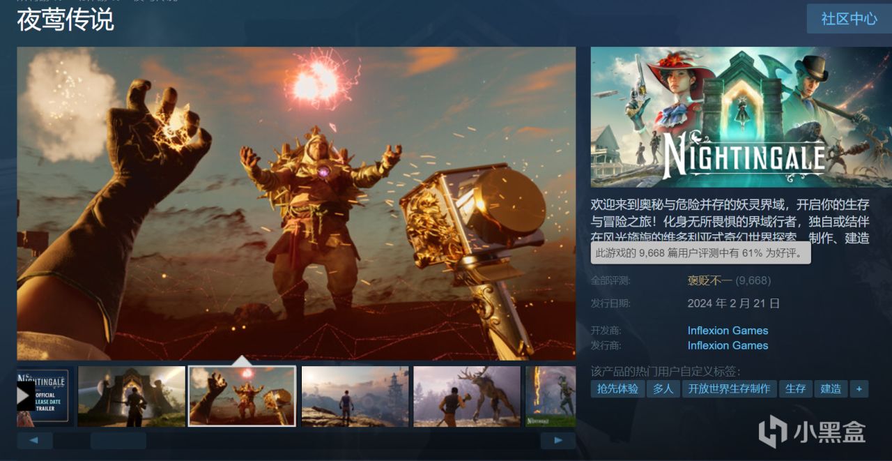 讓我們把鬧鐘調回3個月以前,那個時候一度願望單高達幾十萬的《霧鎖王國》和《夜鶯傳說》把彼此視爲勁敵,準備在24年的春天大戰三百回合。然後的故事我們也都知道了,帕魯出圈大贏特贏成爲現象級爆款,《霧鎖王國》在極度不利的情況下也慢慢守住了自己的領地,好評率和在線都算是是夠可觀,但“賽前”我個人最看好的《夜鶯傳說》居然成爲了唯一的輸家——steam好評率僅僅61%,最高在線堪堪4W7,且目前基本流失了90%......那麼問題來了,《夜鶯傳說》究竟是怎樣的玩法風格,又是什麼原因導致於初期表現不盡如人意呢?