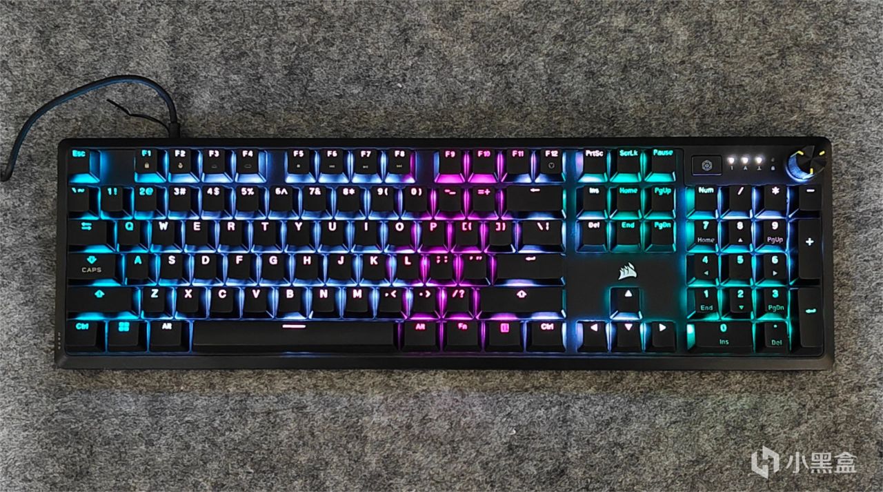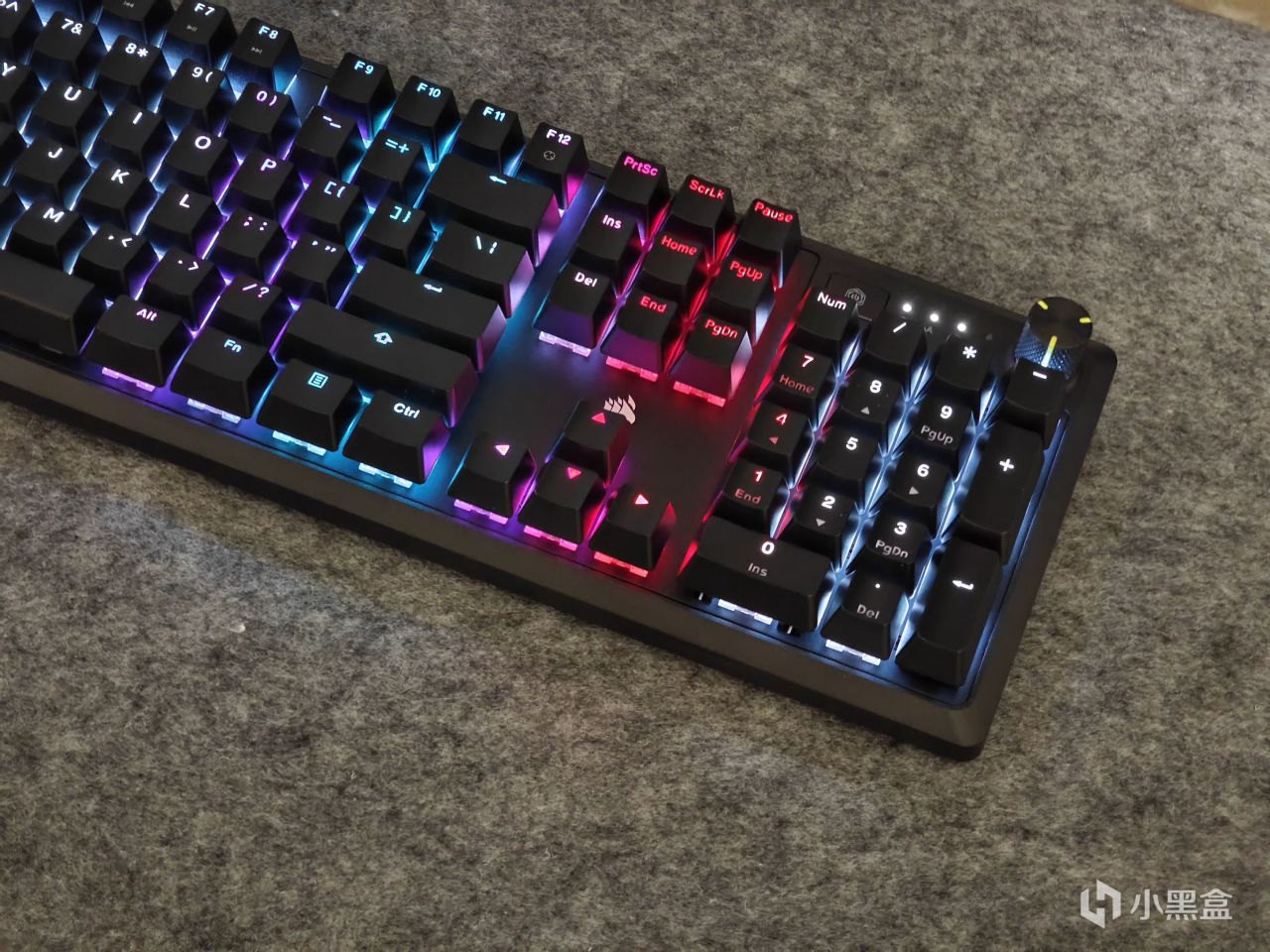 K70 CORE算是正统海盗船特色的产品了:优秀的RGB效果,技术力强的驱动,板载按键配置和灯光方案,厂润红轴,多功能免驱旋钮,双层消音棉。