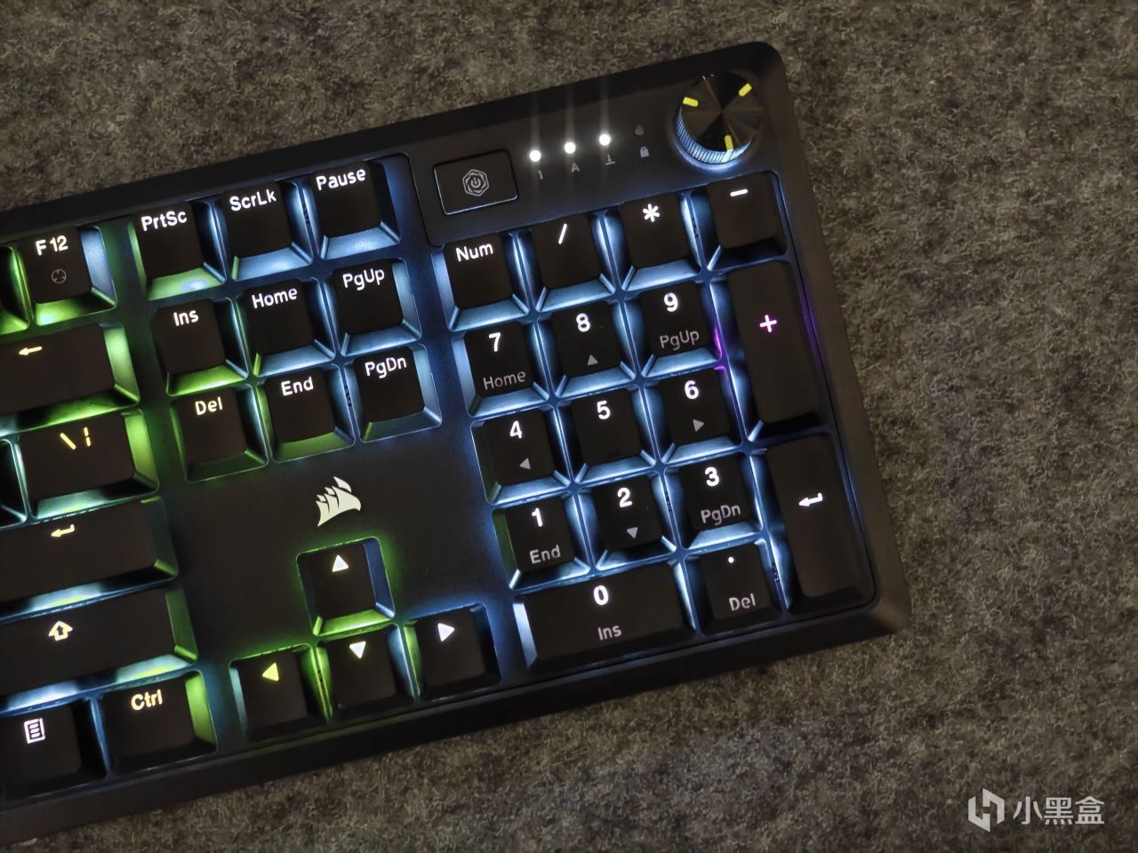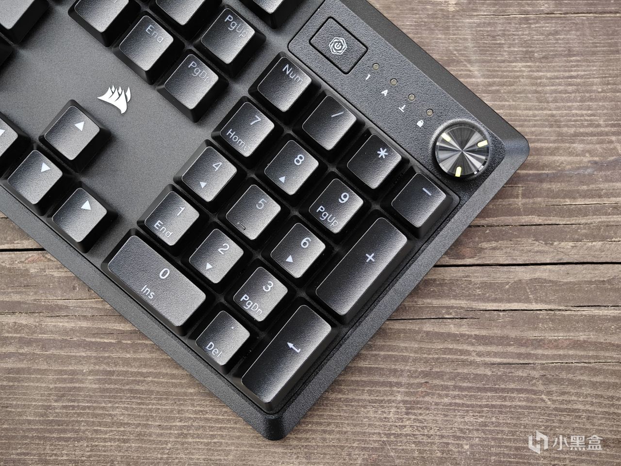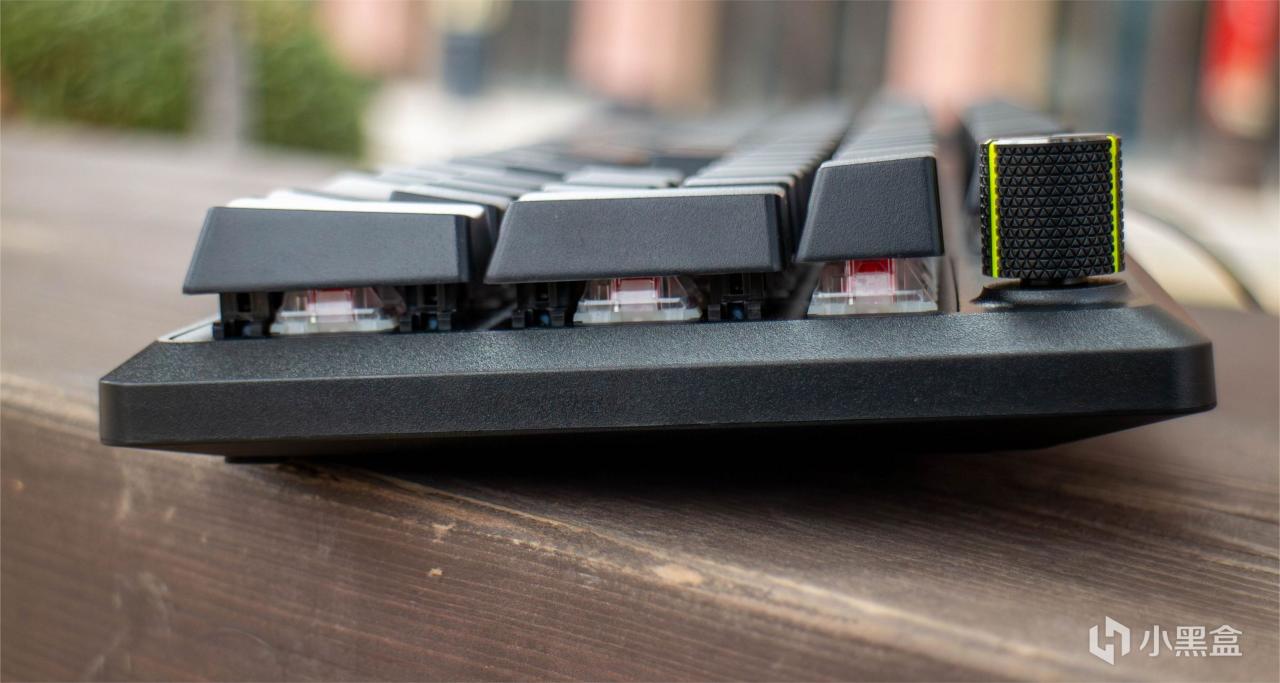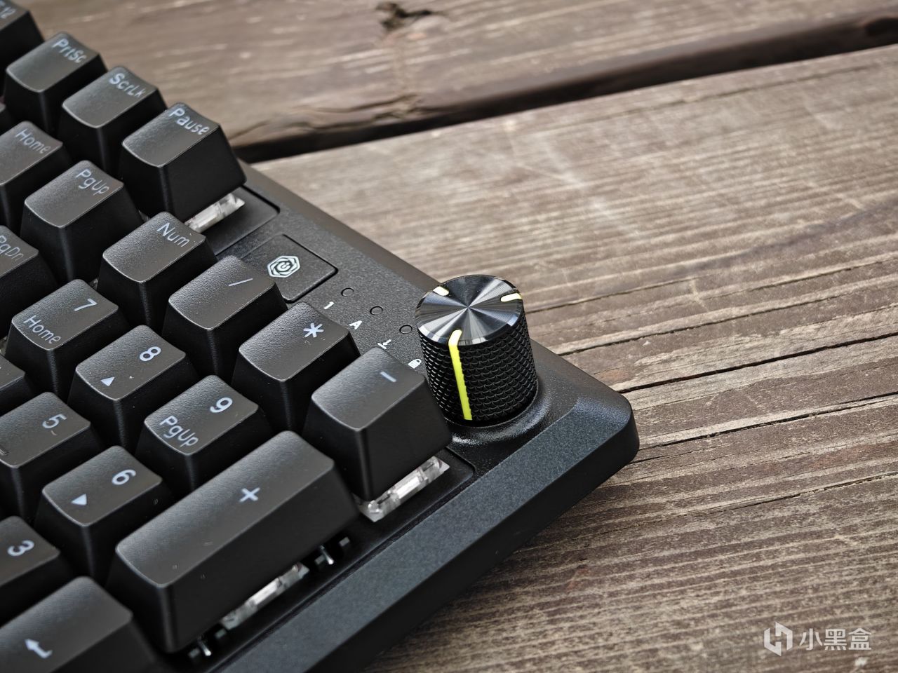 这个键盘在右上角加入了一颗宽厚的旋钮。这颗旋钮有很明显的刻度感,转动时会有细微的咔哒声,这就是细节,谁用谁知道。