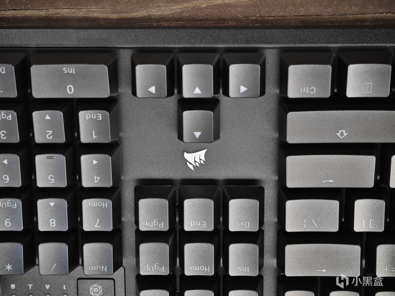 K70 CORE采用标准的104配列,搭配悬浮式轴体方案,简单素黑色配色,让键盘整体看起来非常简约。但是看起来很粘指纹的样子。
