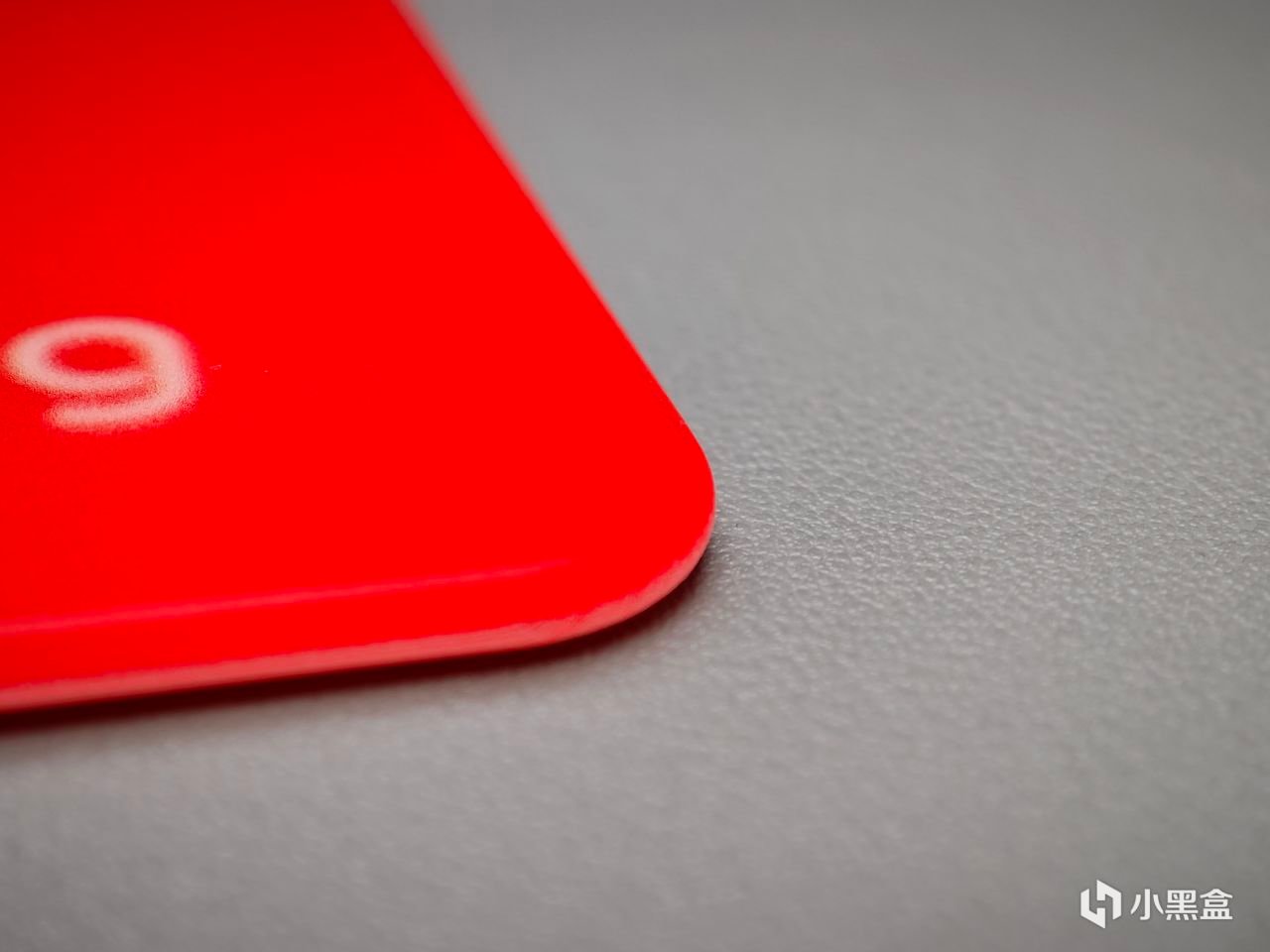 從邊角處可以看到颶霆做了很人性化的防磕碰處理,鼠標墊整體爲圓角矩形,可以防止四個角扎到手上胳膊上,同時四邊包括四角都有做一定弧度的倒角處理,避免了正常使用時胳膊放在邊緣刮蹭到的情況。