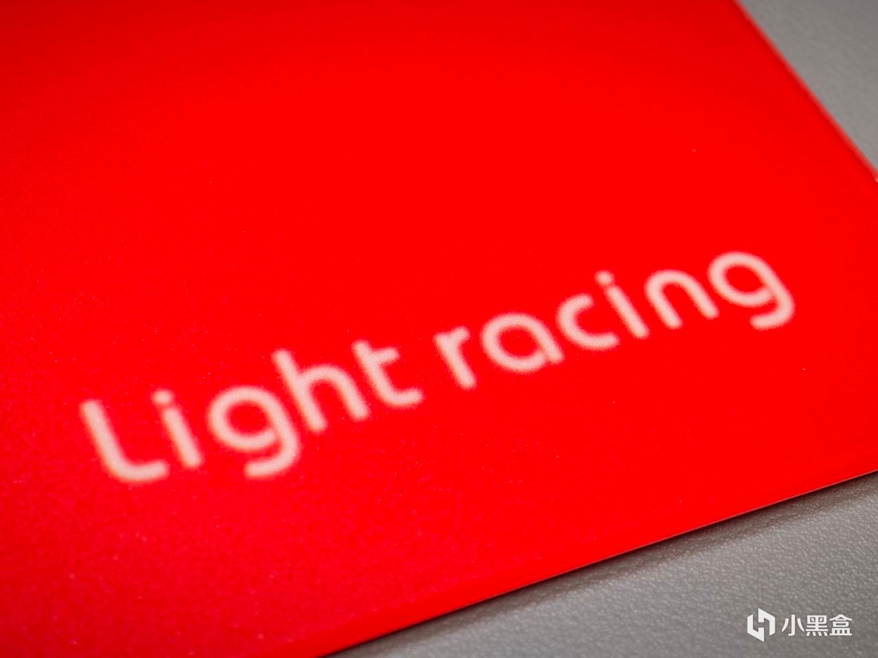 LOGO位於鼠標墊右下方,可以看到採用的並不是鼠標表面噴漆或是使用什麼工藝刻字上去,而是在墊子表面之下刻印,由於表面沒有凹凸,所以並不會影響鼠標的軌跡和實際手感,不過字符會有一種朦朧感。