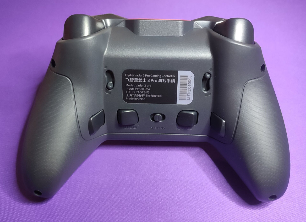 黑武士Pro的背面还有四个背键用来按键映射,加上正面的ZC做到更多的宏设置,两个握把处也有做防滑纹路,中间的开关则是选择2.4G接收器/蓝牙/NS三个选项的拨动,明日香联名的黑武士Pro背面倒是没什么特别的,全黑设计,让我想到了万代的偷色!