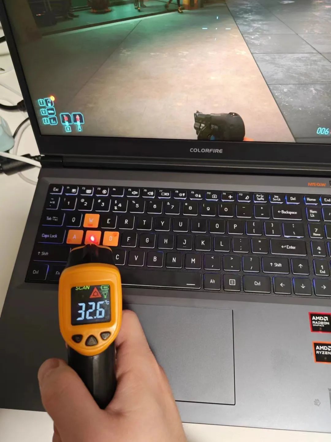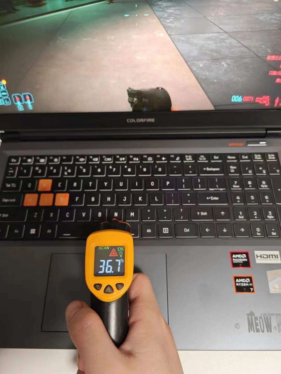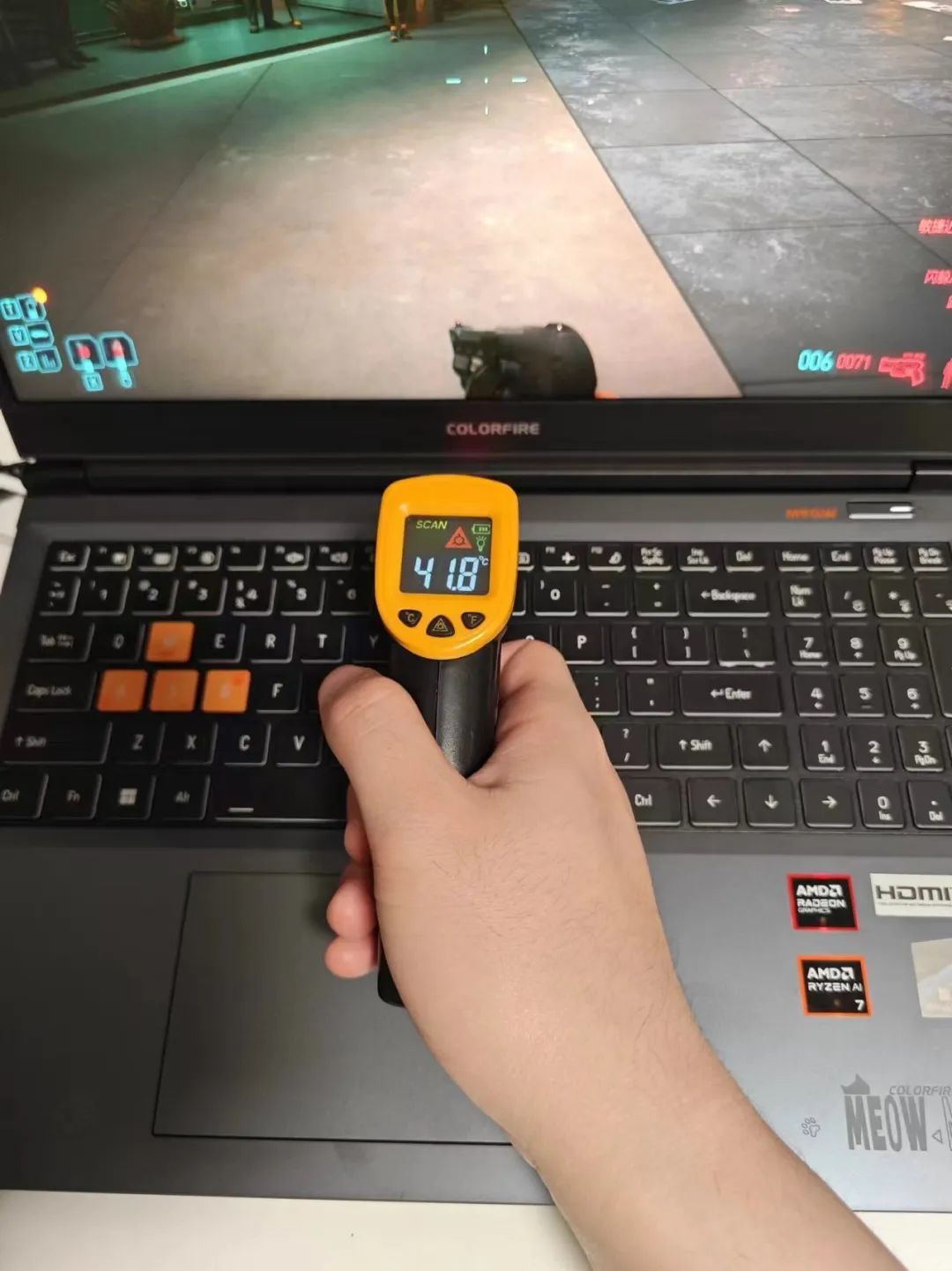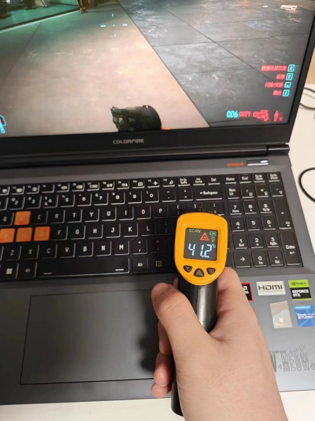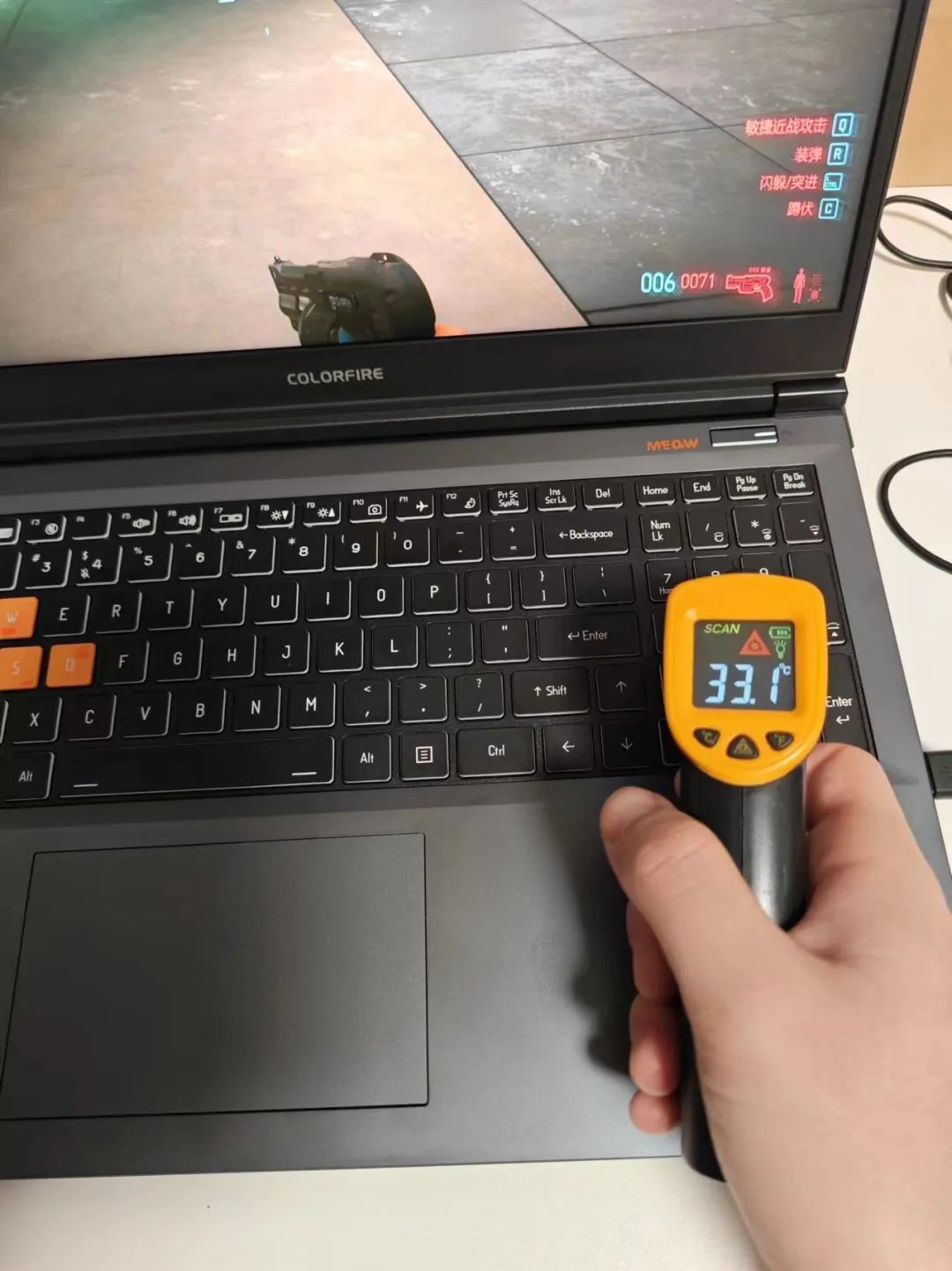 赛博朋克2077 开启性能模式,实测WASD区域33度左右,键盘最热的中间区域42度左右,温度控制出色。
