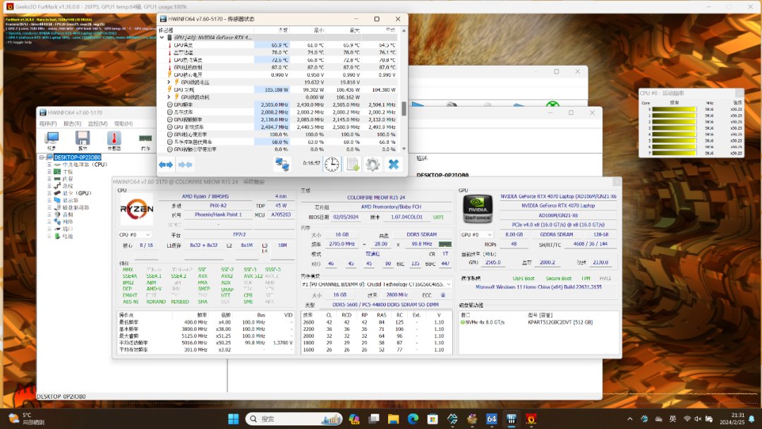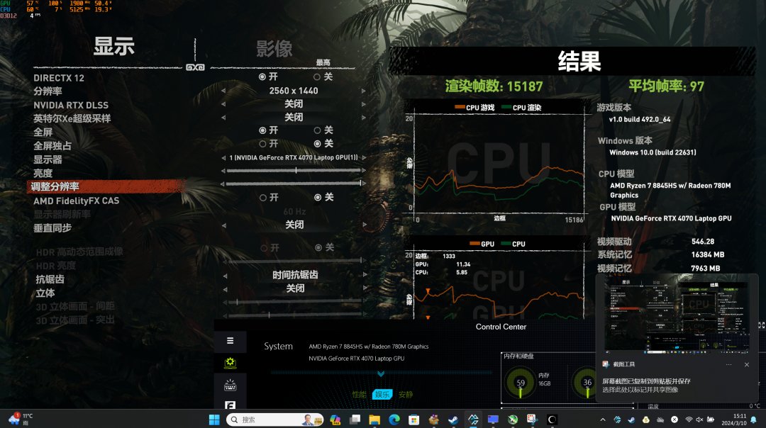 显卡:RTX 4070 8GB Laptop GPU(支持独显直连)