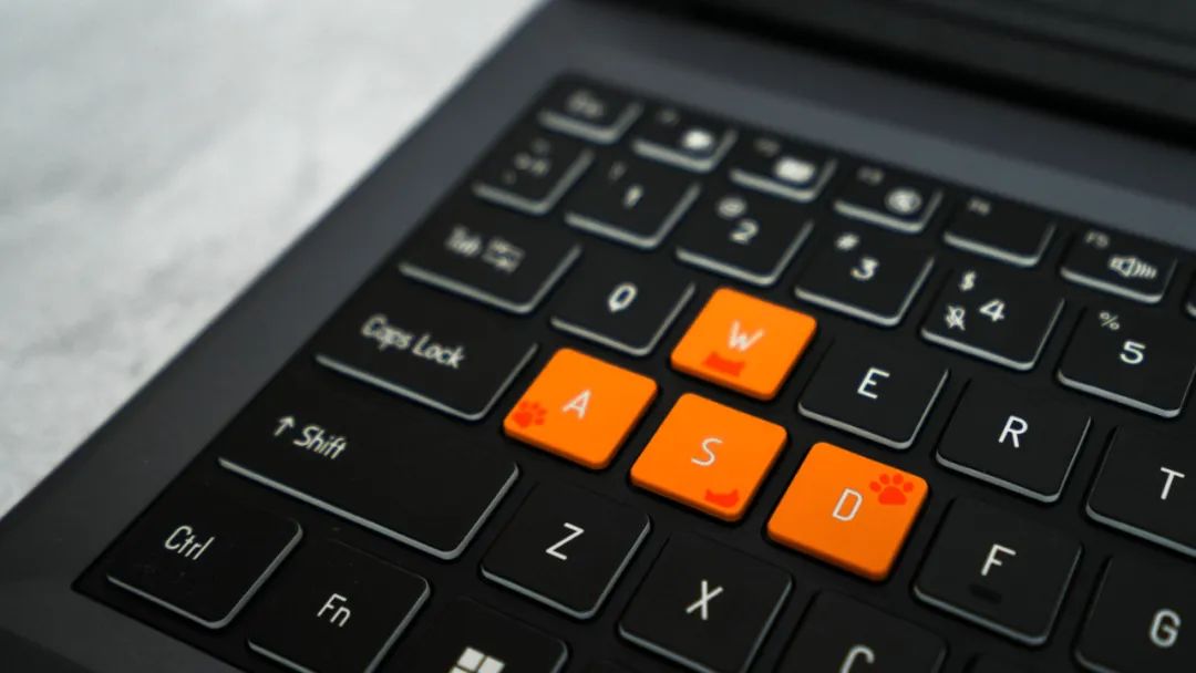 键盘 开关键 C面都有猫抓的图案设计,WASD橘色键帽设计