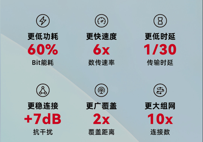 其中对标蓝牙的星闪SLE,峰值速率可达12Mbps,而蓝牙只有3Mbps。在延迟方面,星闪SLE可以做到0.25ms,而蓝牙的延迟可以来到0.625ms,差距同样非常大。不仅如此,它在接入模式下的最低延迟可以做到0.02ms,其性能上限相当高。