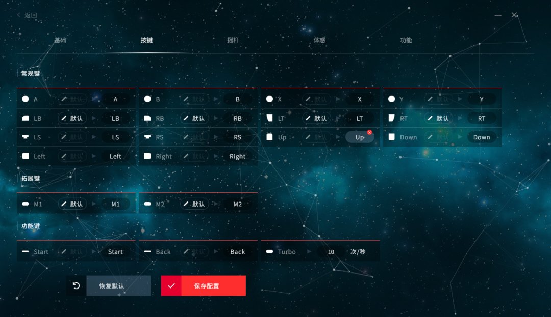 在手柄背面设计有星闪接收器收纳仓,方便我们外出携带,防止接收器丢失。收纳仓两旁,则是M1和M2背键,背键的布置合理,触力度适中,既不容易误触,也能轻松触发。不仅如此,在北通游戏厅驱动里,手柄的所有按键都支持自定义宏编程,易用性十分优秀。