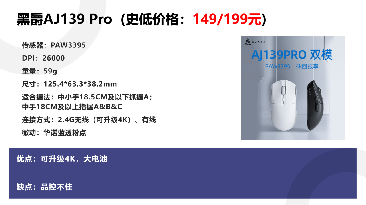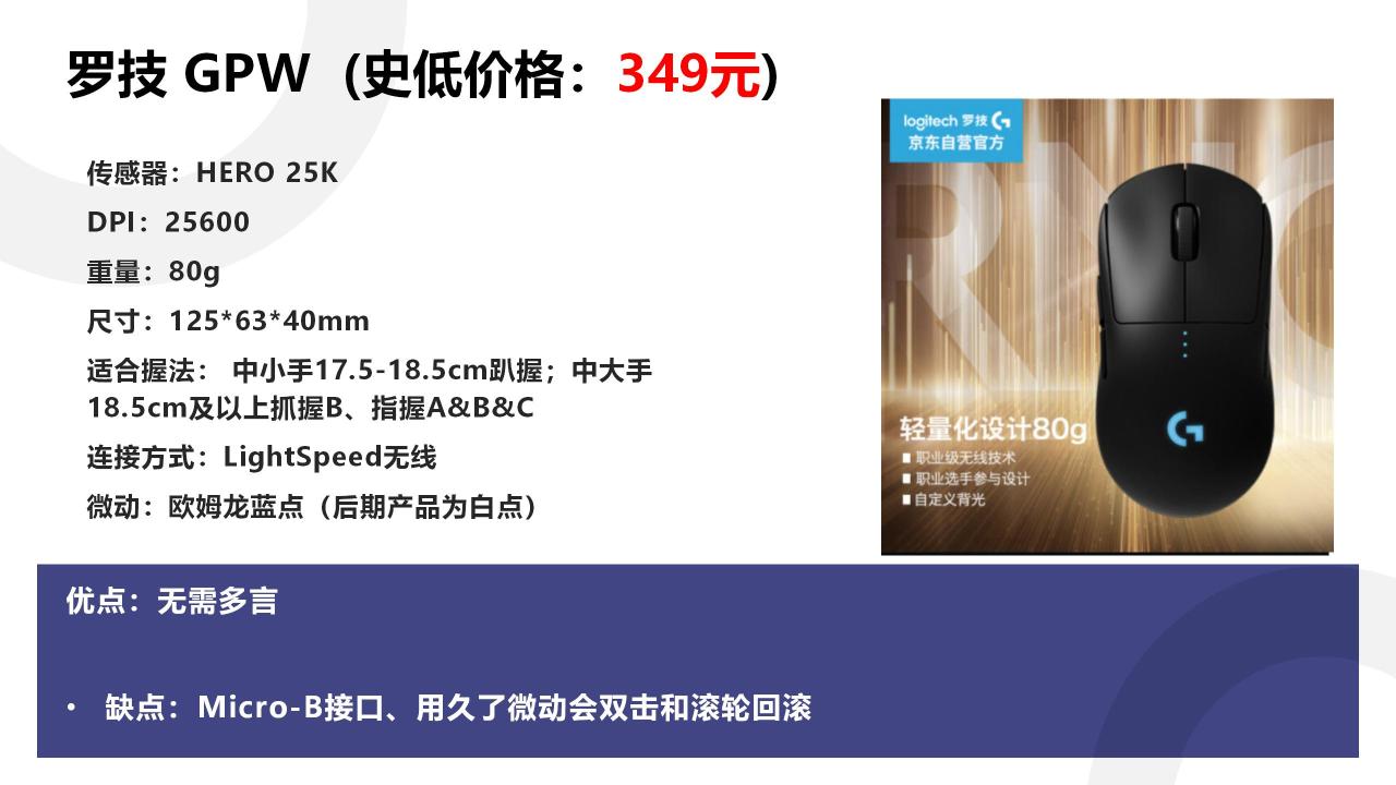 但是你如果说,我是FPS玩家,我追求更低的延迟,更适合我的模具,更轻的重量等等,那咱就接着往下看。