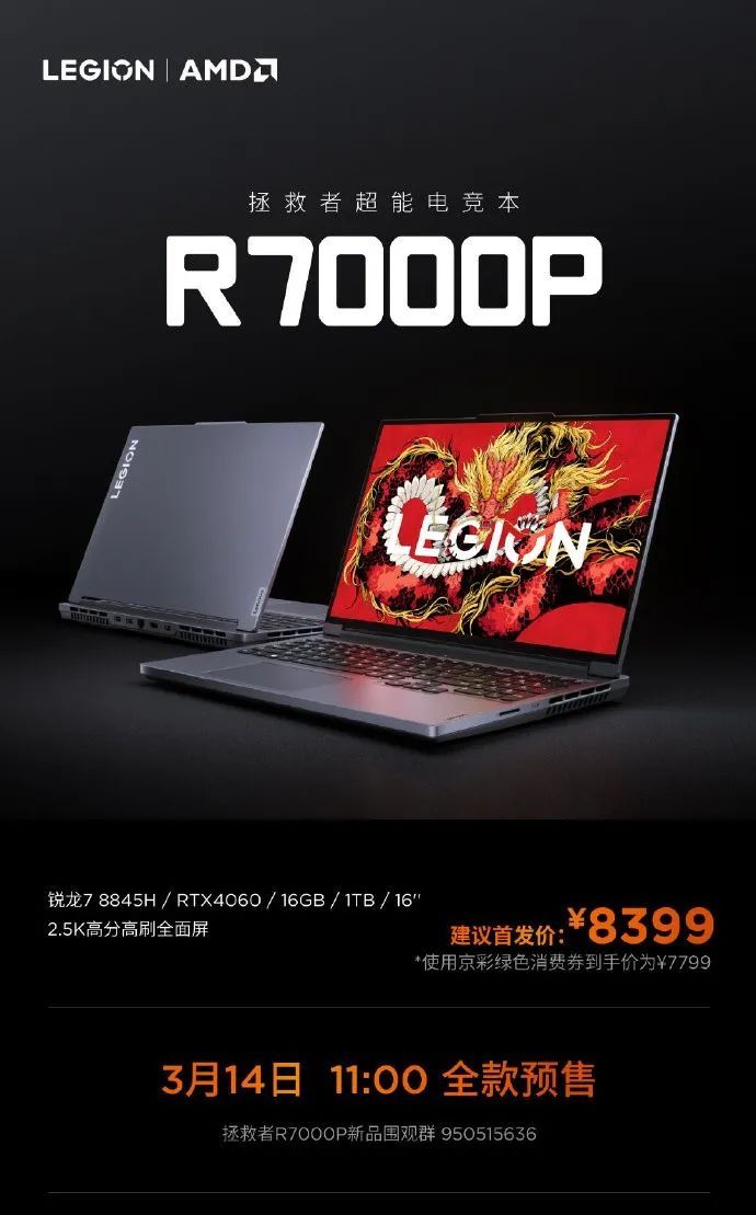 3月14日,联想拯救者宣布开启全新R7000P系列游戏本的预售,具体情况如下。