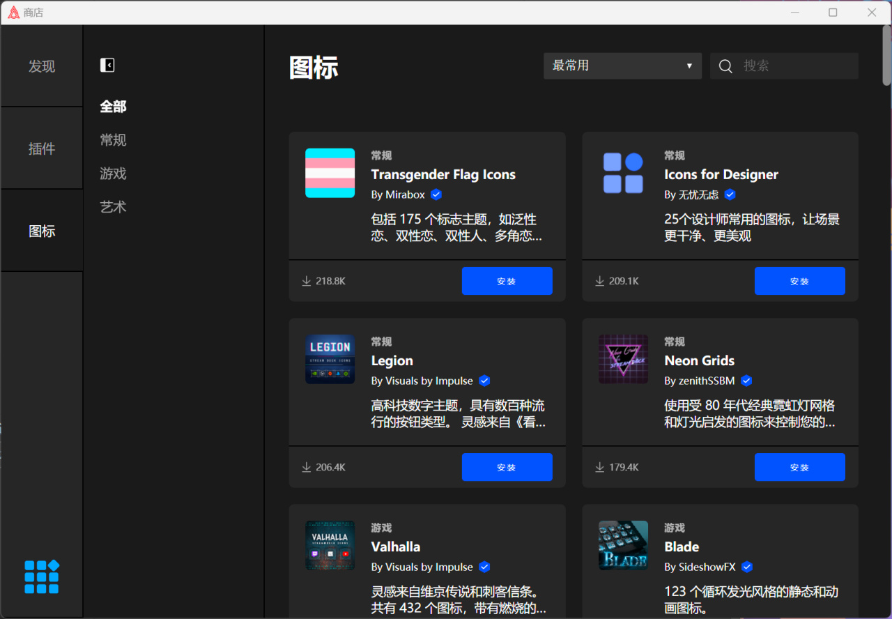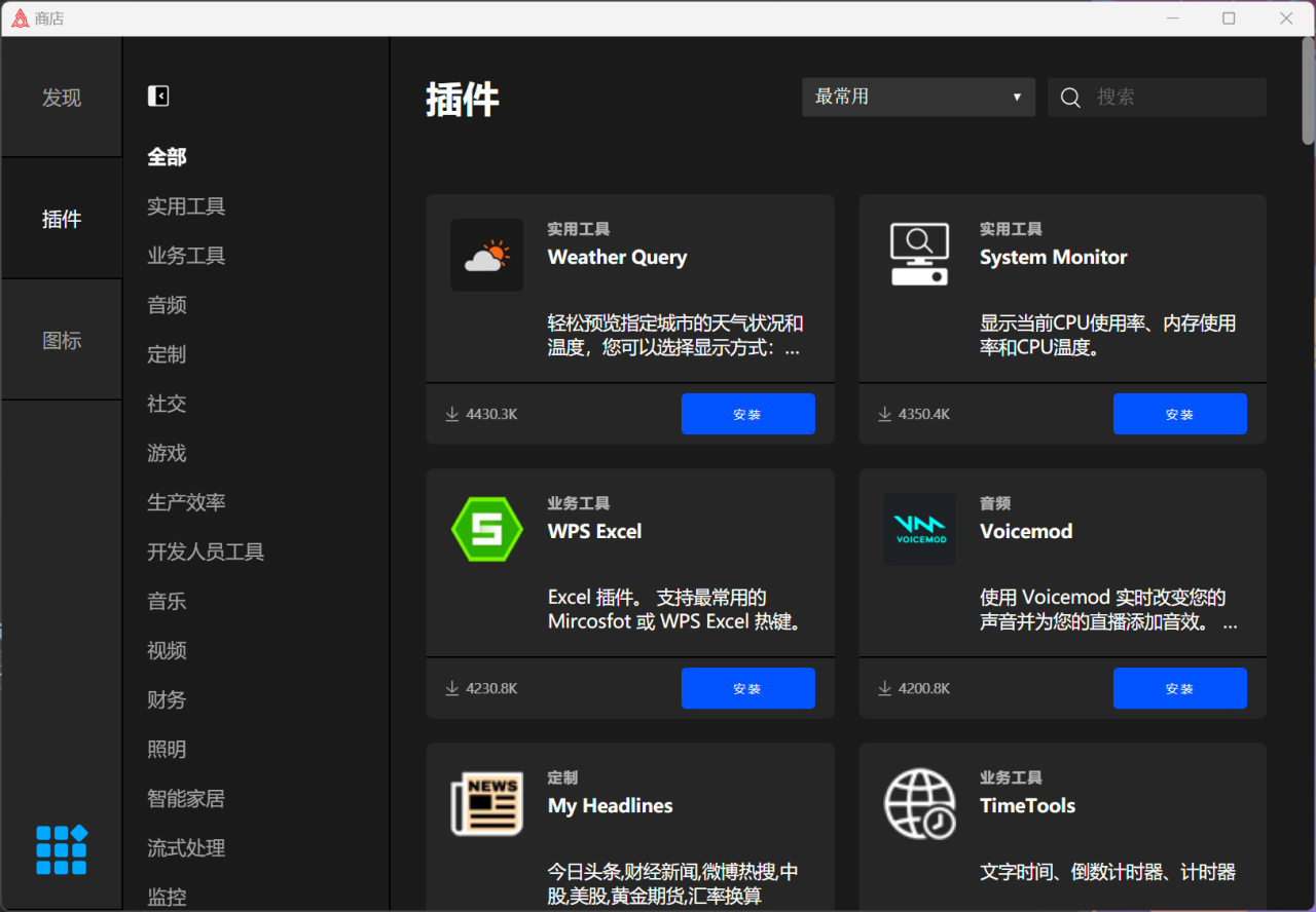 此外,你还可以在商店中发掘更多的插件和图标,当然,图标不仅可以用他指定的,还可以截图或者上传本体图标文件,可玩性也非常高,颜值方面也能让你更符合你自己的口味