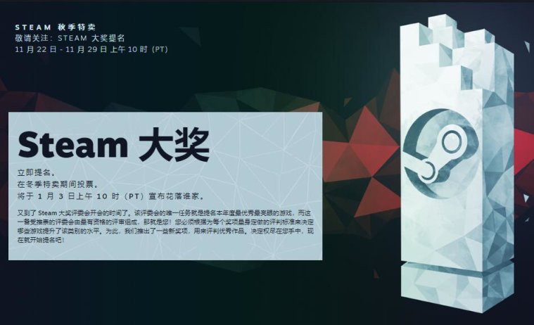 以下是本次Steam大奖提名奖项: