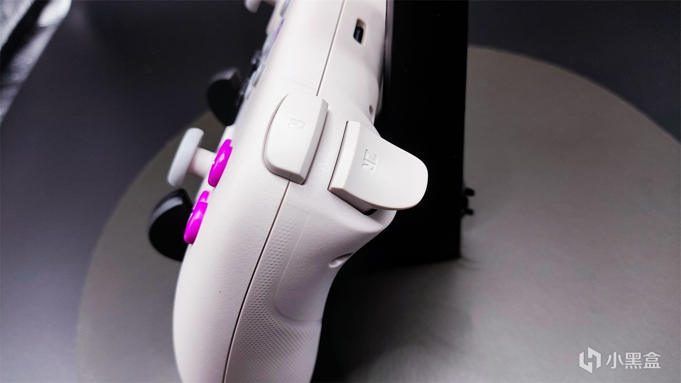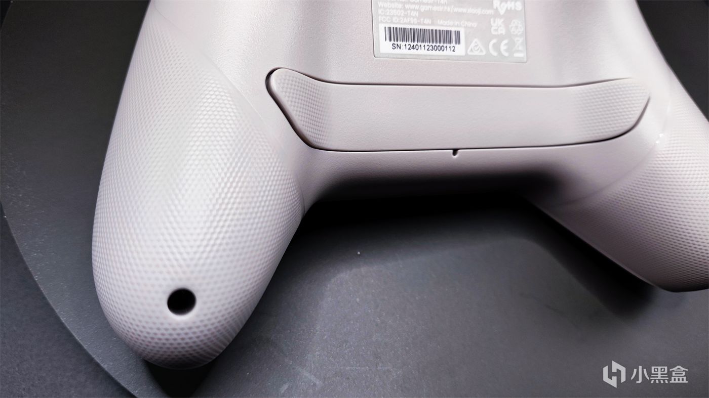 傳統的鐳雕曬紋,讓你握手柄的手感能體驗到舒適防手汗,但是又不顯得滑手。其背鍵則是採用一體式的,相比單獨的按鍵設置能夠更好的觸發並且不顯得突兀。
