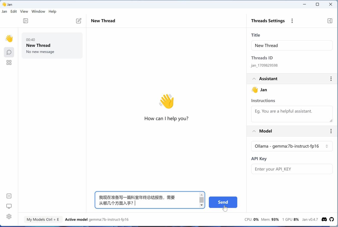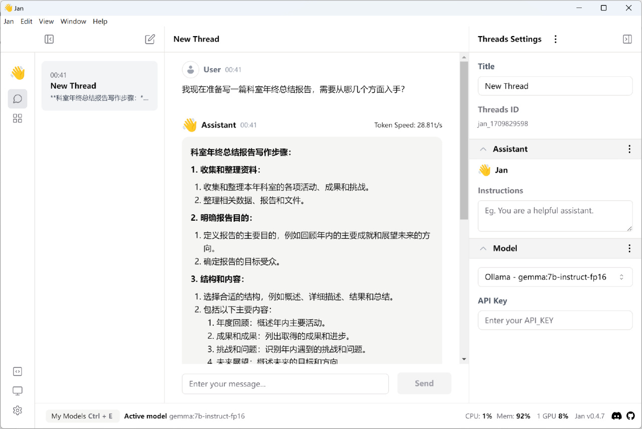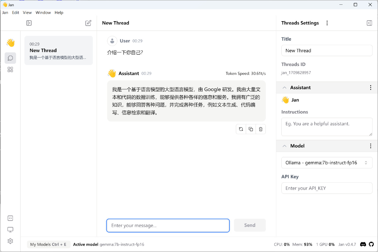 本次就为大家分享本地部署Gemma的操作流程,并演示如何使用JAN AI来实现UI界面访问Gemma。