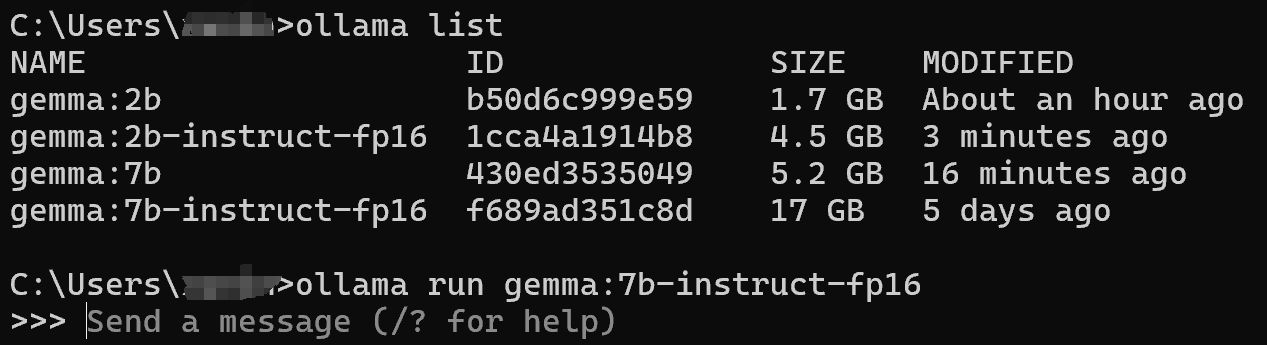 首先我们要通过命令提示符启动 Ollama 服务器,并且加载运行我们要跑的Gemma版本,这里以7b全量版为例: