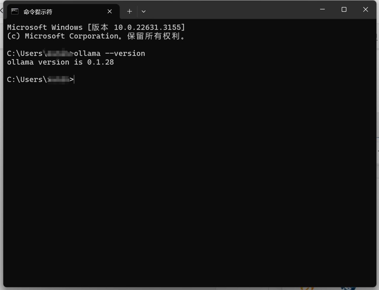 接下来我们进入CMD命令提示符,输入“ollama --version",当看到ollama版本号正确显示时,就已经完成安装了。