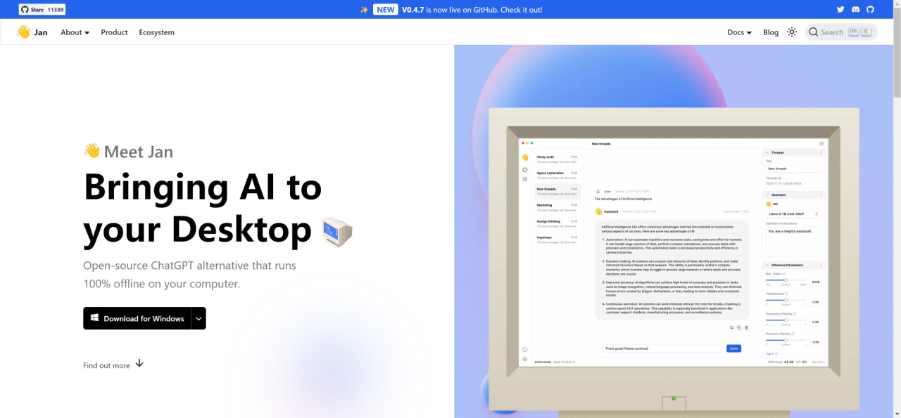 首先我们要到JAN的官方网站下载Windows客户端,并直接安装: