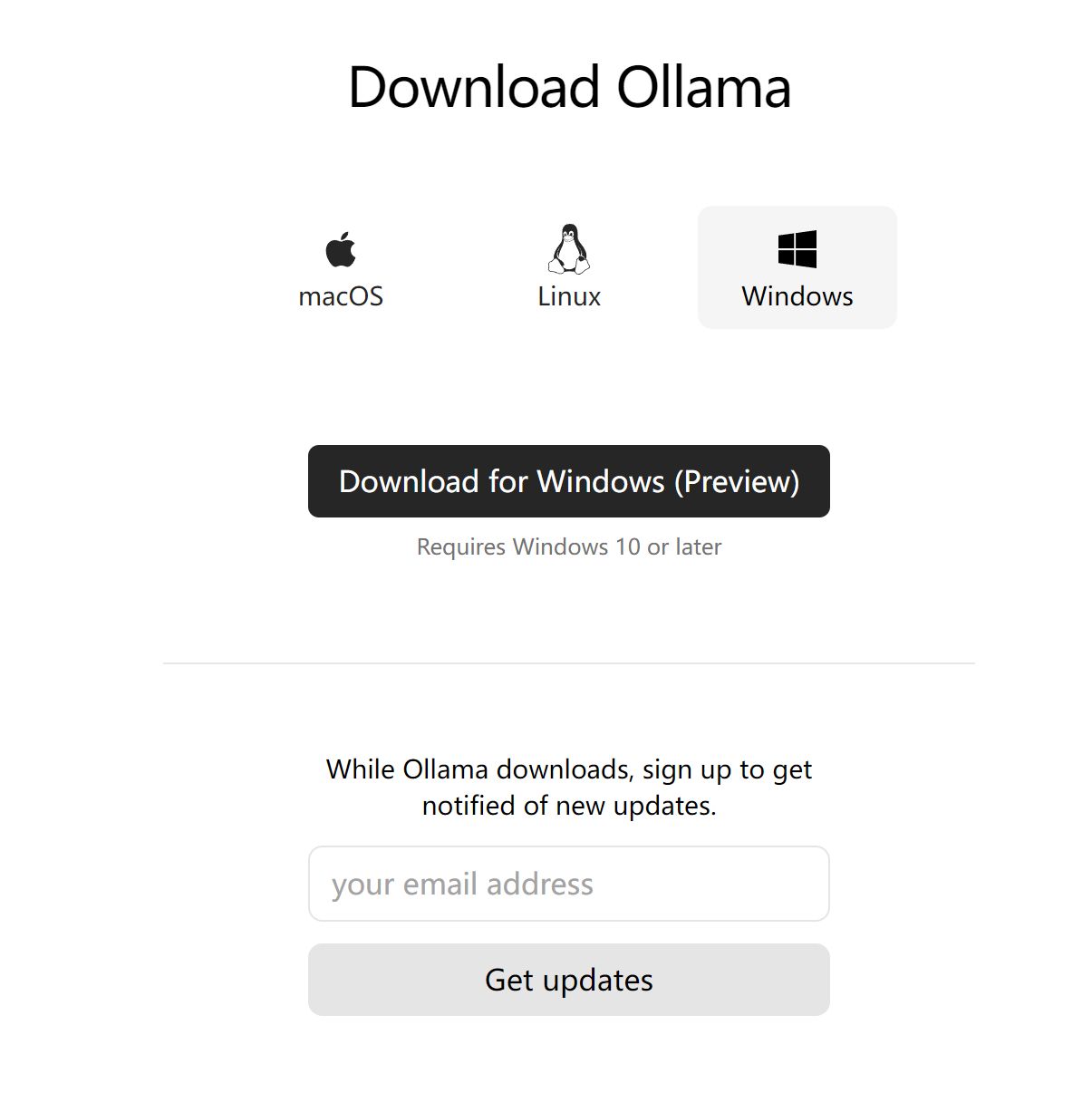 这里我们以Windows系统为例来演示,首先去Ollama的官网或者GitHub页面下载最新的Windows版本安装包: