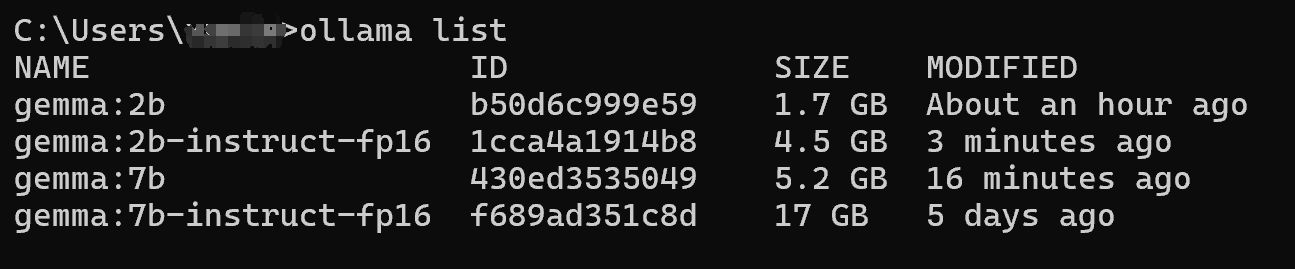 这一步我们直接使用最简单的方法,使用Ollama来拉取Gemma的模型文件。请注意,由于文件服务器在国外,所以我们需要一些魔法上网的技巧,请自行研究。