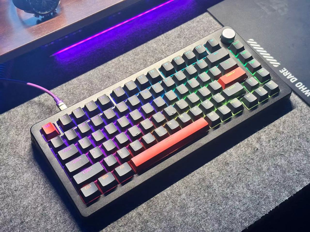 A75PRO在配列上还算如命名一样采用75%加一旋钮的方式。然后在外壳是是相比之前的a75是做了一些调整及其闪粉的工艺。