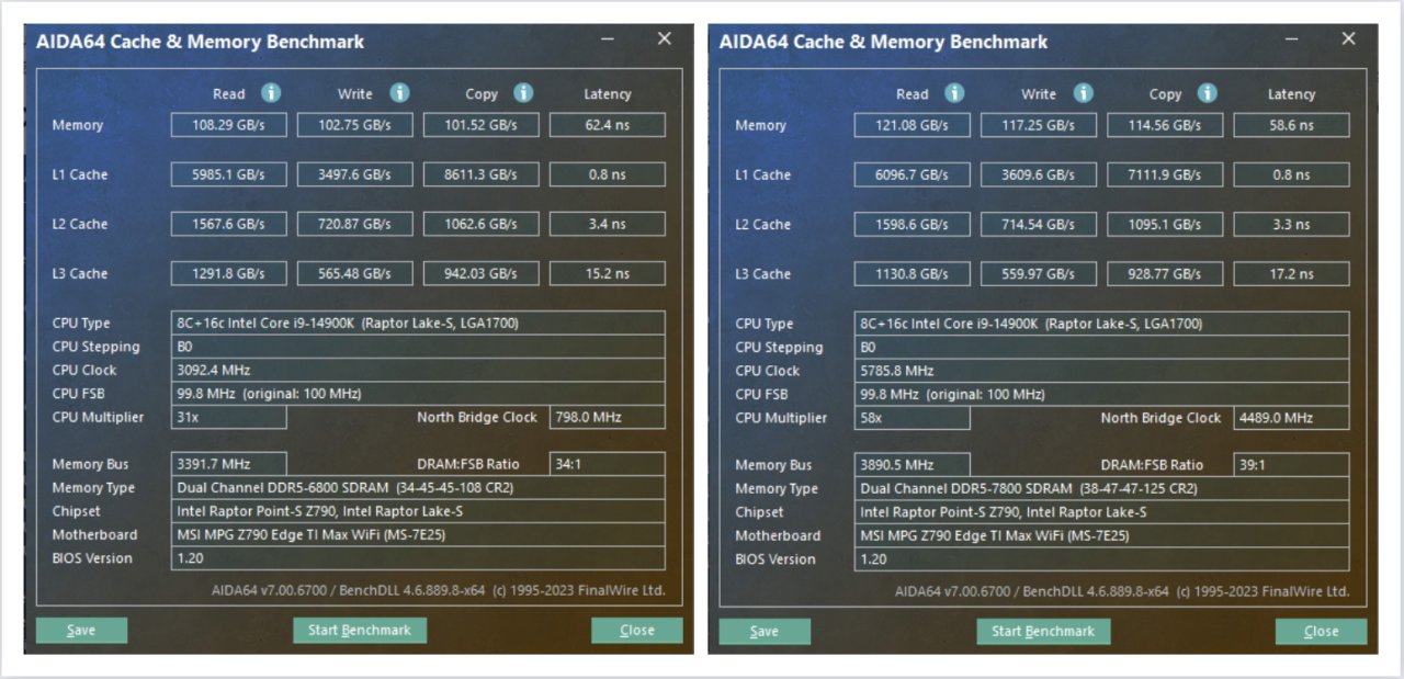 ▲我們來比較一下6800MHz與7800MHz下的性能差異: