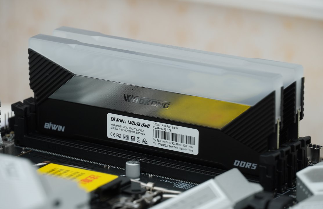 ▲WOOKONG(悟空)系列是佰維存儲從幕後走到前臺後推出的旗艦電競存儲系列產品,目前覆蓋了SSD固態硬盤與DDR5內存,本次我拿到的是WOOKONG(悟空)系列DX100內存的黑色版本,其XMP頻率與時序爲6800MHz CL-34-45-45-108,這款內存還有銀色外觀的版本可選。