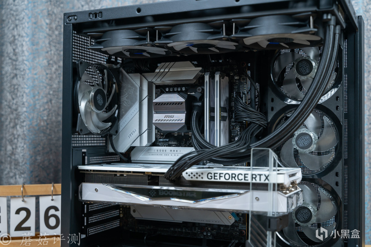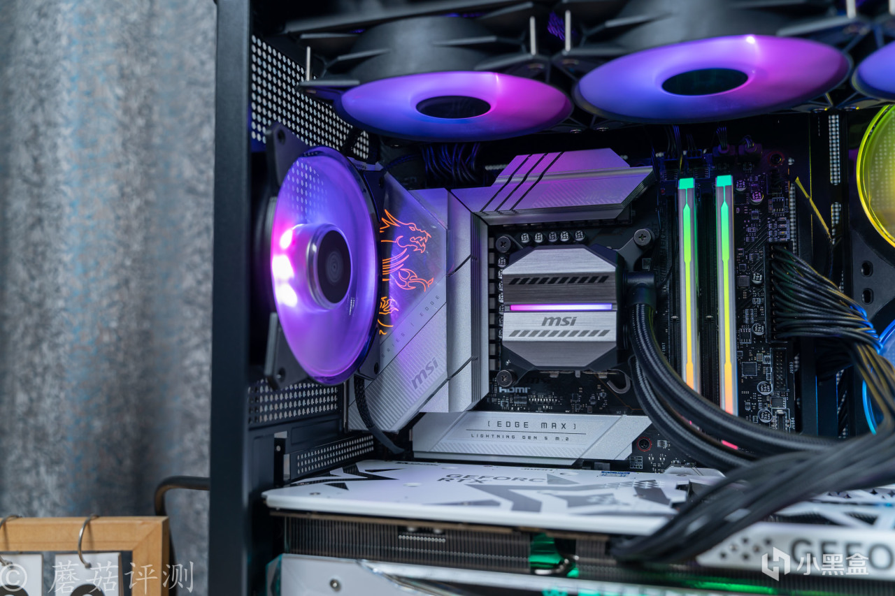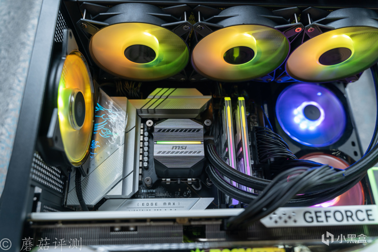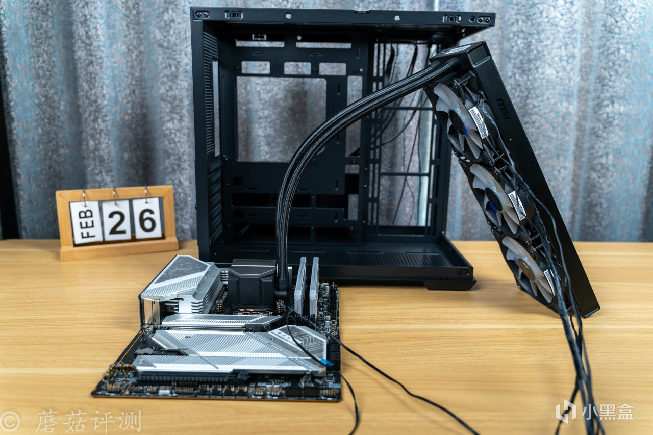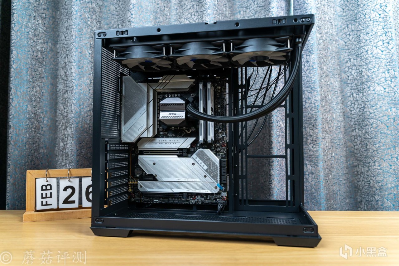 ▼主板轻松固定到机箱的左侧,360水冷排安装到机箱的顶部,水冷排和主板之间,还有不少的空间。