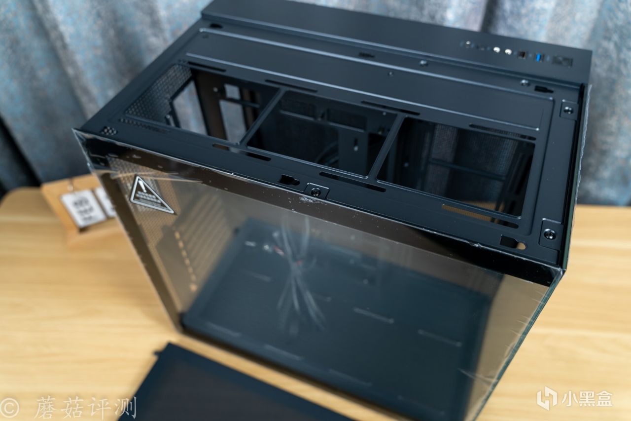 ▼机箱前部也是大面积的侧透玻璃,和侧面的玻璃侧透之间,并无立柱。