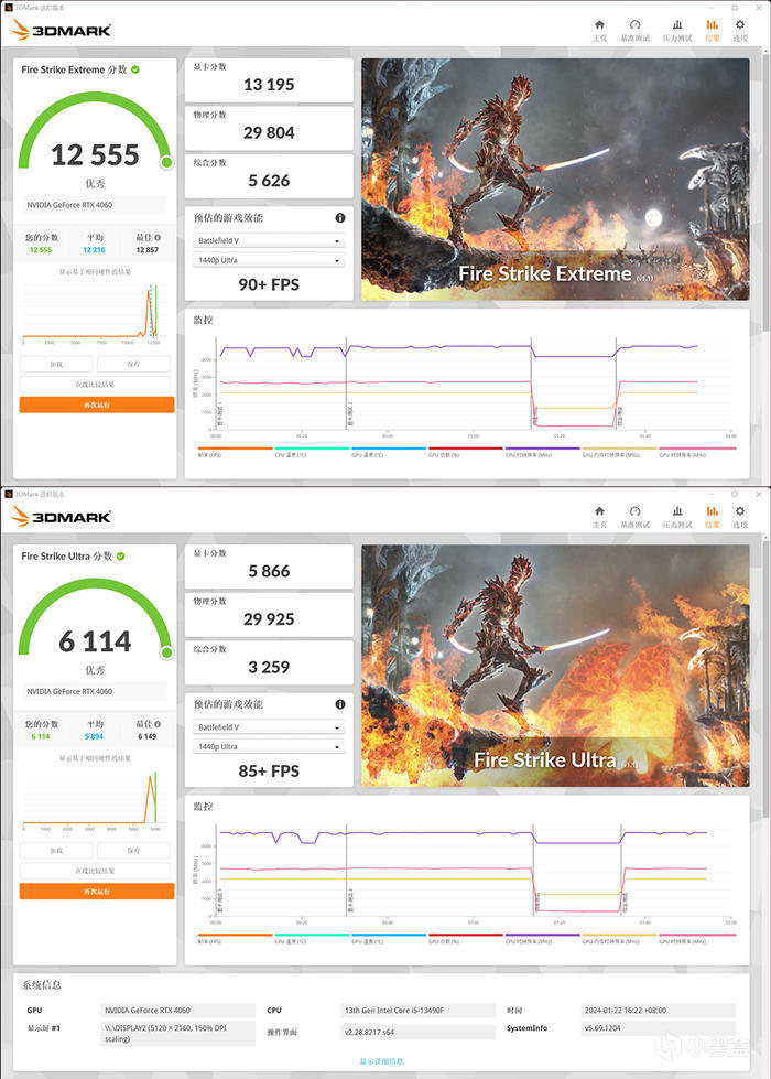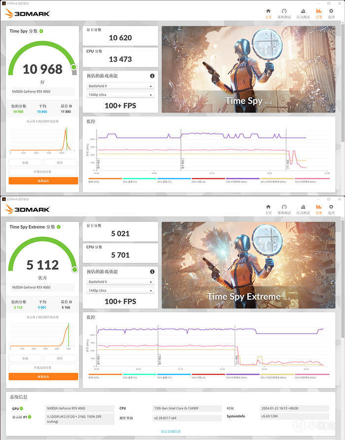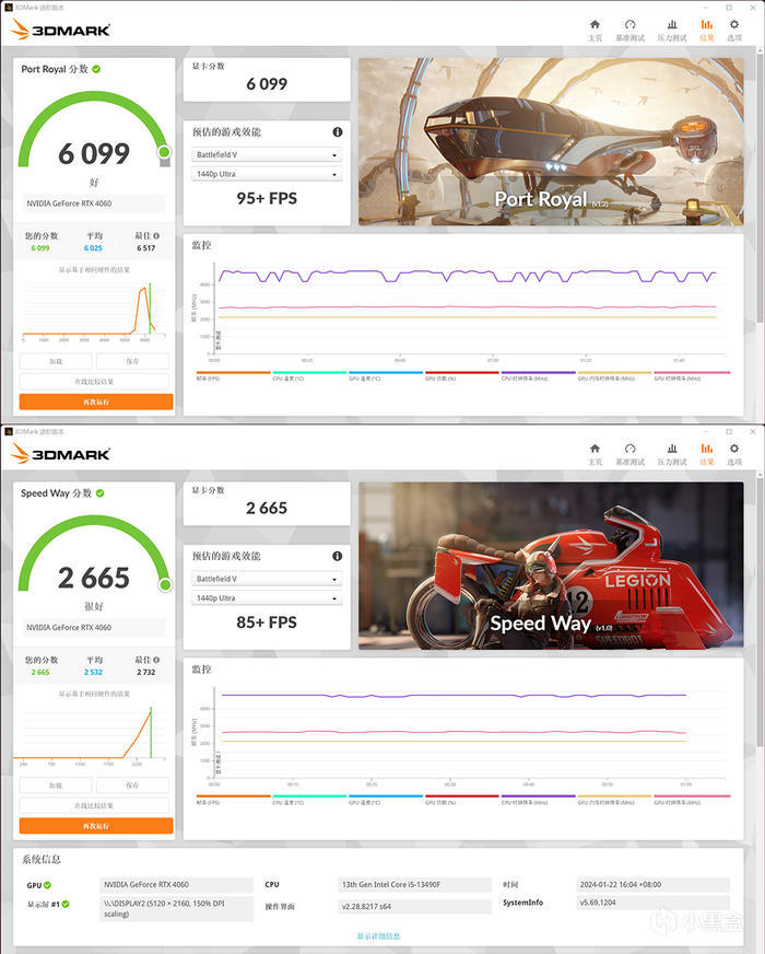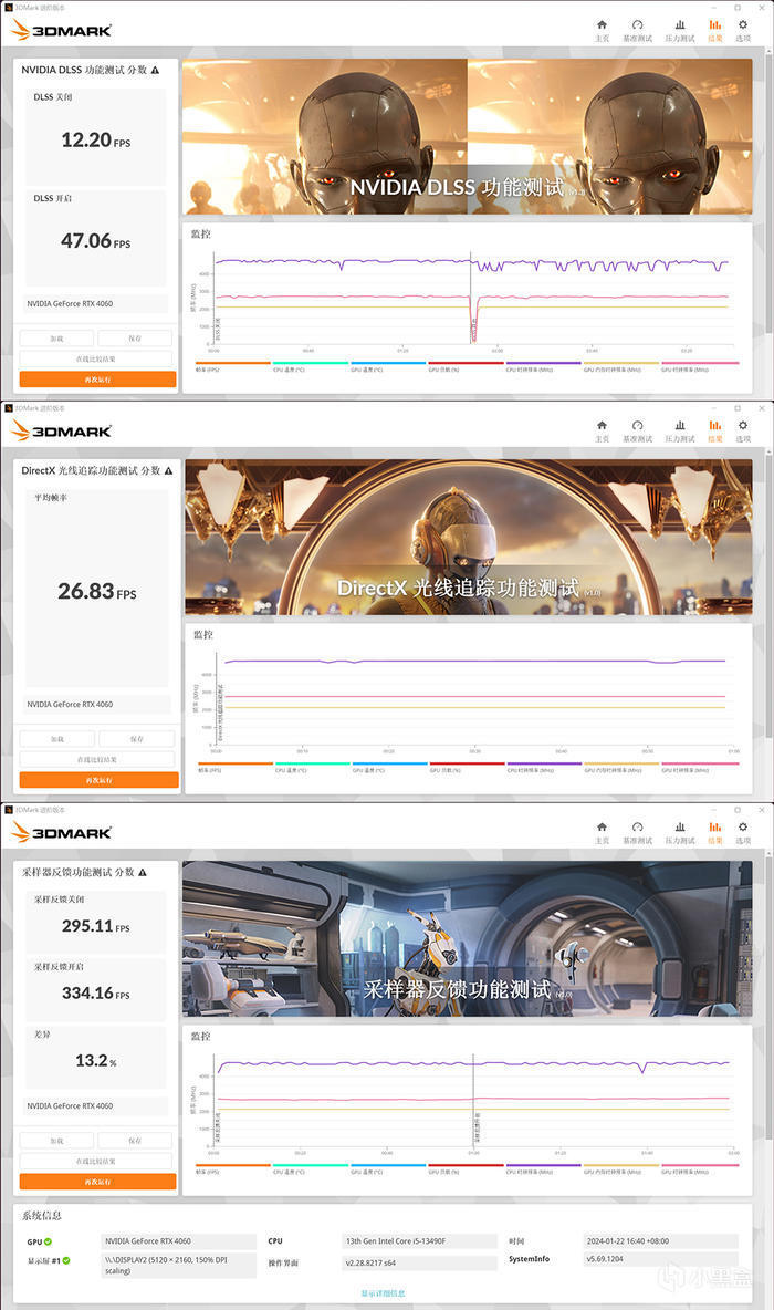 影驰 GeForce RTX4060 金属大师 OC,3DMARK 各种模式下的得分如下。
