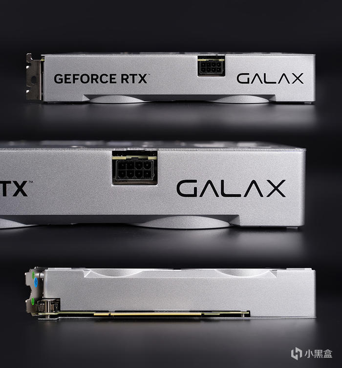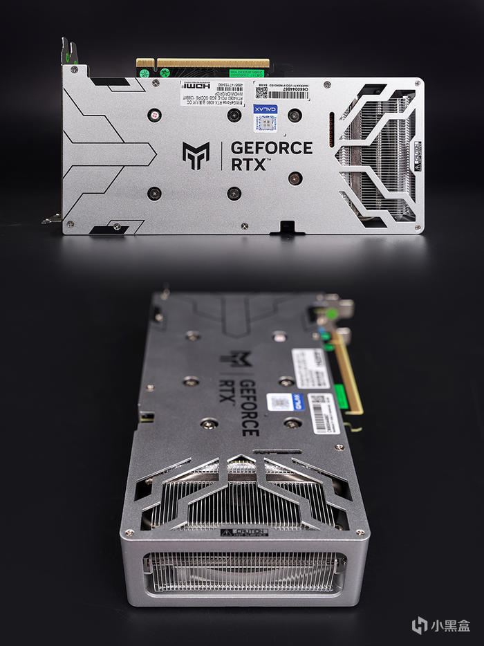 显卡两侧均采用封闭式设计,采用单 8PIN 供电接口,GEFORCE RTX 及 GALAX LOGO 修饰,金属外壳采用 CNC 加工而成、金属拉丝、雾面处理等多种工艺打造。