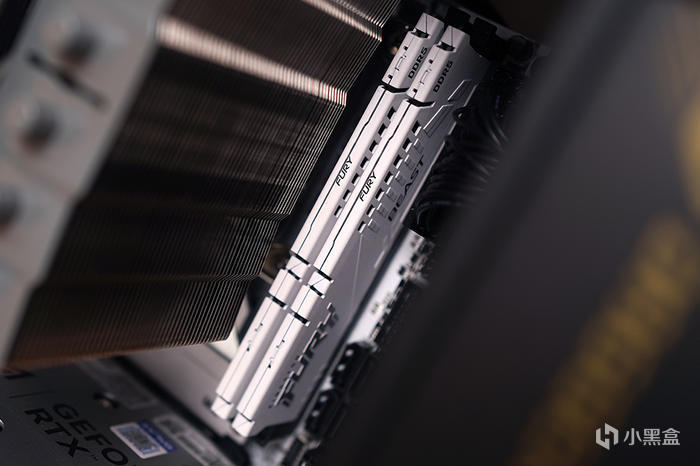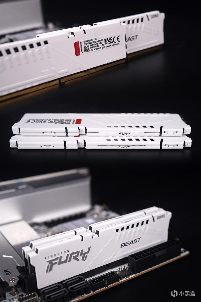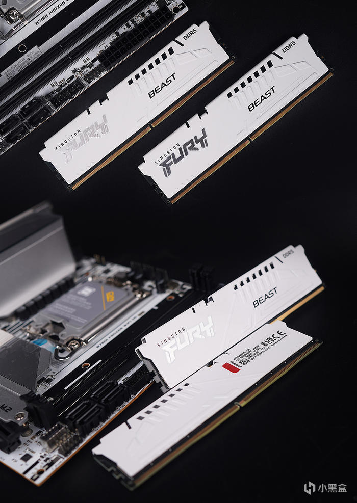 选用无光白色内存,选用金士顿 FURY Beast 野兽系列 DDR5 5600HZ 32G×2 白色电竞款,除配色复合方案,其矮马甲高兼容设计,也好不妨碍给 SS135 散热器添加风扇使用。