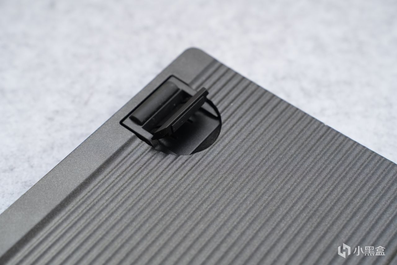 鍵盤這個腳撐設計就有點意思了,腳撐的地方做了一個硅膠緩衝的裝置,起到一個緩衝作用。避免了在使用鍵盤的時候按壓鍵位產生的鍵盤蹺蹺板的現象。並且做了一段的腳撐設計,可以調節一定的高度,可惜了,不是兩段的,有的朋友們可能習慣更高一點的腳撐設計。