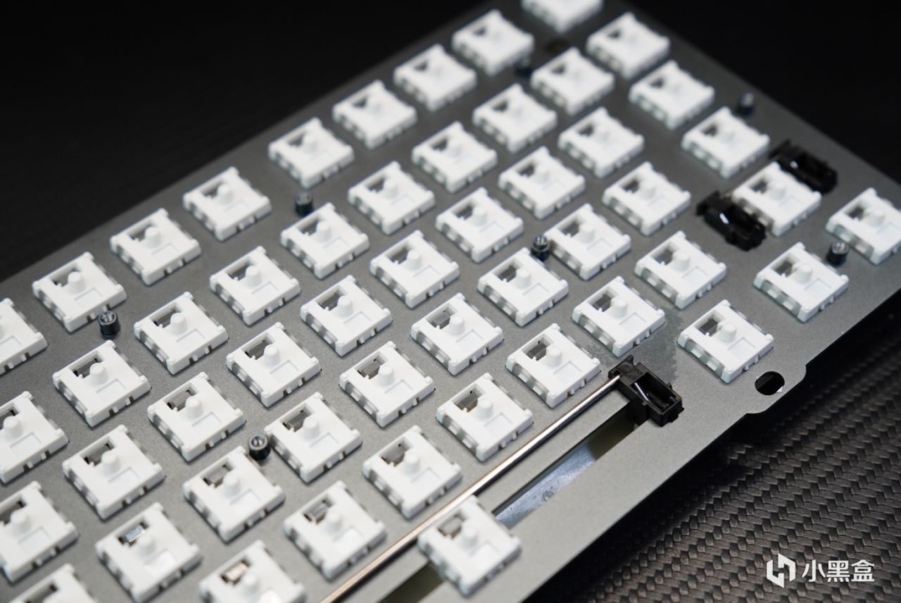 將鍵盤拆解呢可以看見鍵盤採用的鋼定的傳統定位板,手感還是比較硬的,在一定程度上面是跟現在國內主流的gas結構pc定位板有些許的差別。