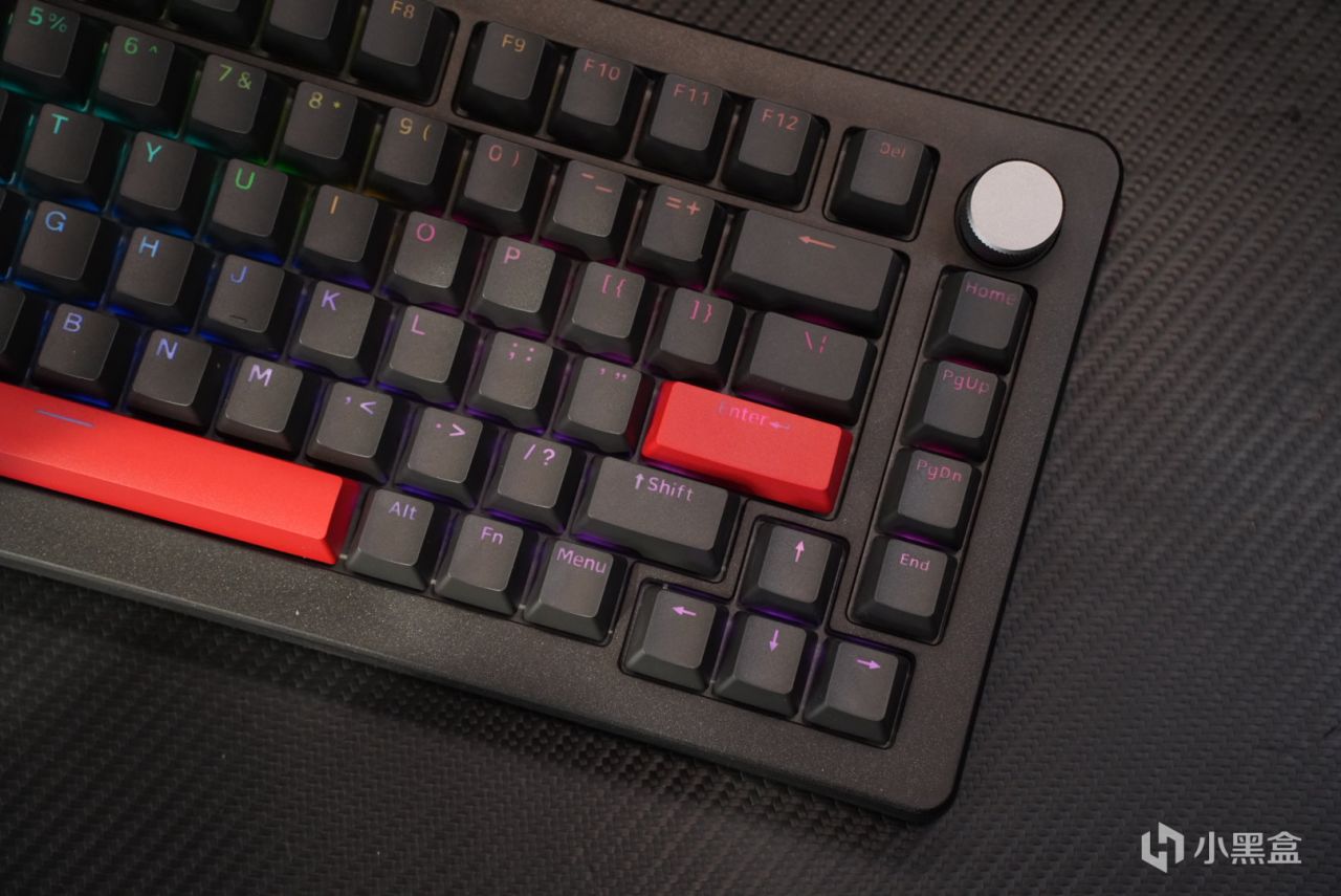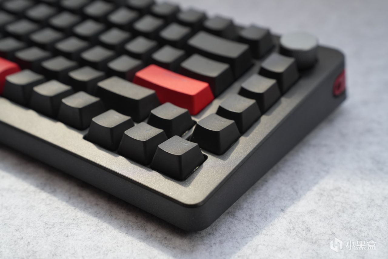 這把鍵盤雖然說只有黑色版本的,但是鍵帽的材質上面都是採用的是pbt材質的鍵帽,鍵帽的整體水平是不錯的,水口位置處理的很不錯,沒有拉手的情況。