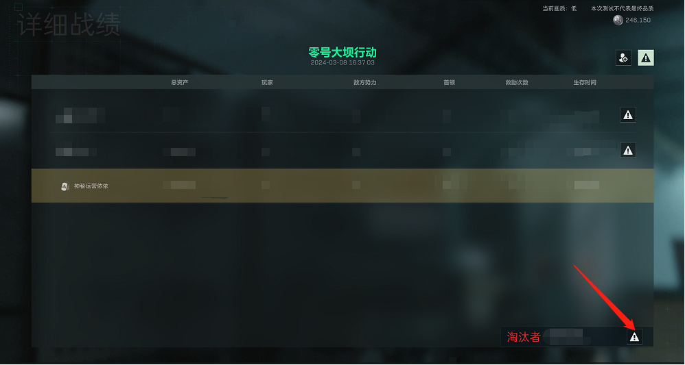 【結算界面】或【點擊個人頭像】->角色信息->歷史戰績->選擇對局->點擊歎號舉報淘汰者