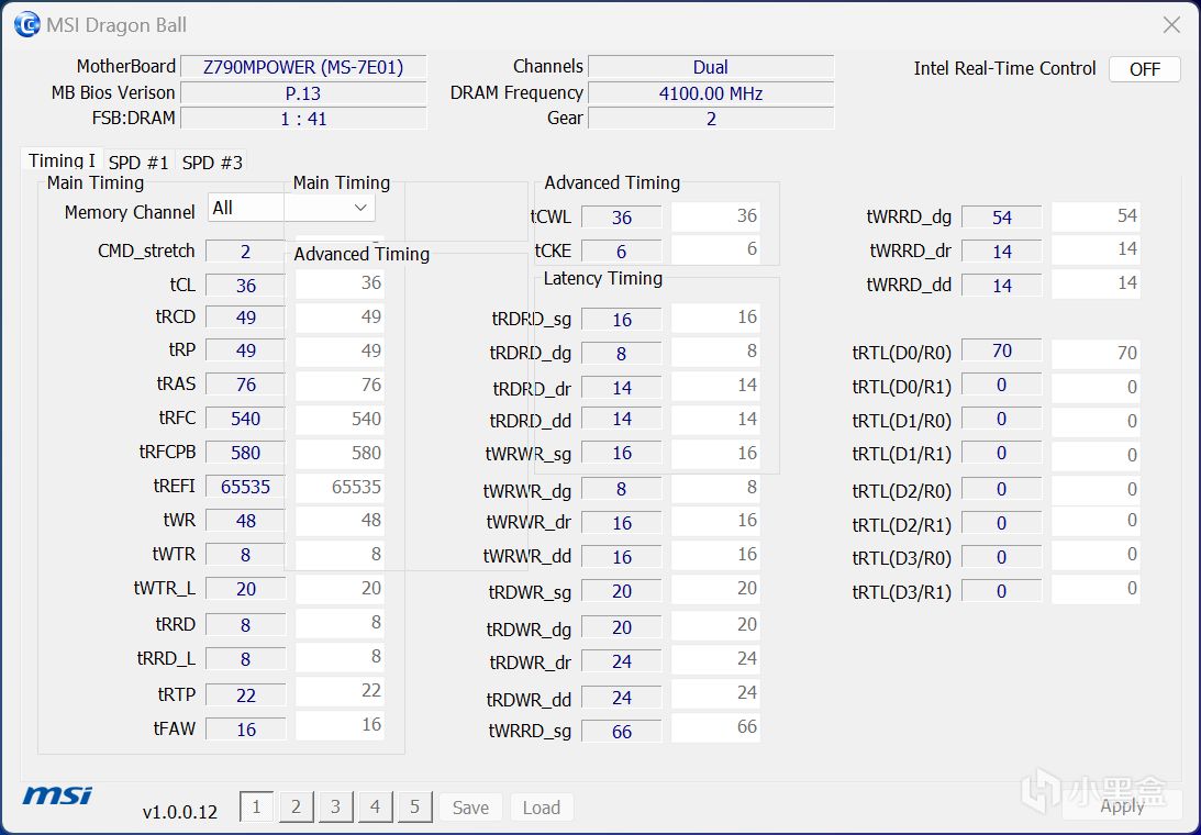 DDR5 8200C36-49-49-76主参下的小参设定参考,相对前面的8000MHz频率自然放宽了不少,如果不放宽是通过不了自检点亮的。