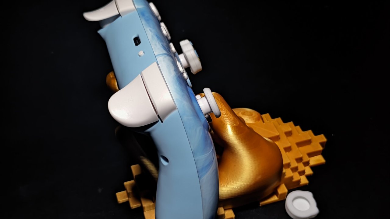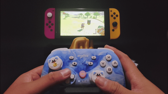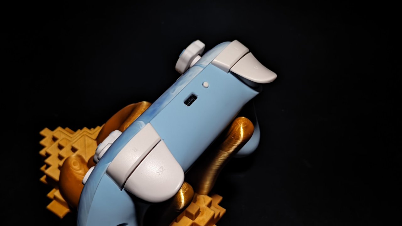 握把处没有防滑设计,但类肤材质的握持感还算不错,比较有意思的就是他的hd震动,之前科普过hd马达是老任的专利,不过近几年专利到期,大家都可以买了,用马里奥惊奇和奥德赛简单试了下,对我来说震感还算不错,比较细腻,奥德赛也能正常的游玩。