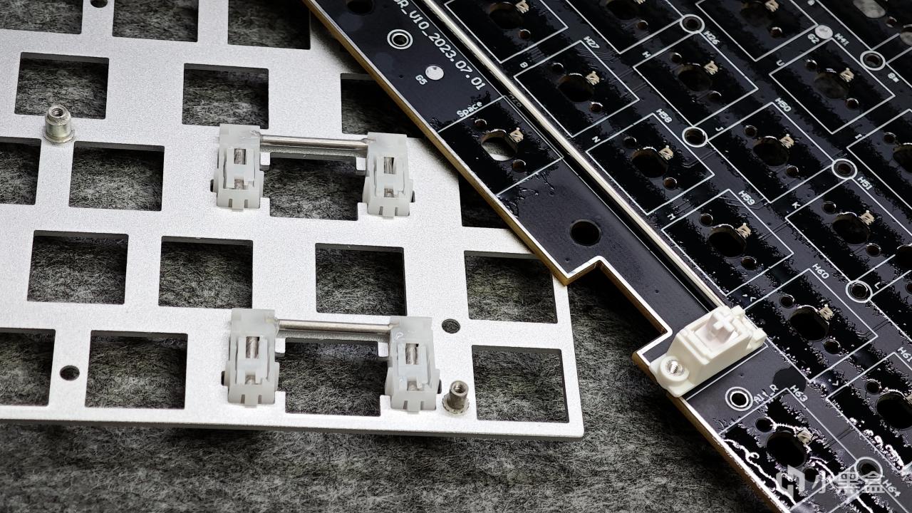卫星轴方面左shift、回车、退格这三个小一点的大键采用的是钢板卫星轴,空格采用的则是PCB卫星轴,相对来说我更喜欢钢板卫星轴,整体如果出现杂音会更好调整一些。而G68搭载的这几个卫星轴,文中这把只有空格有较大杂音,其他大键卫星轴控制的还算不错。