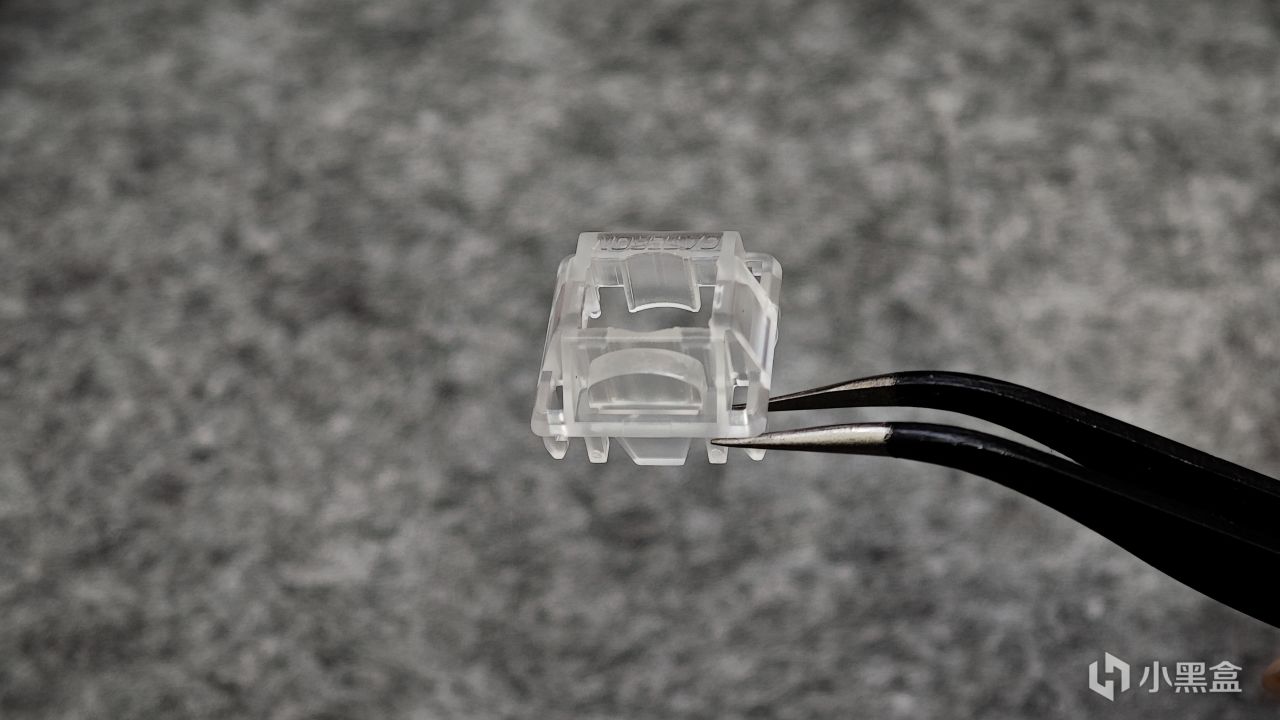 在轴体上盖处可以看到磁白轴是自带了导光柱的,可以有效增强键盘的RGB亮度,从而带来更好的RGB体验。同时上盖也采用了全透的PC,整体的亮度非常不错。