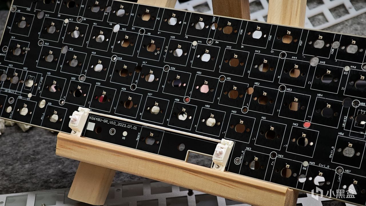 相较于机械轴体热插拔还需要在PCB上焊接上轴座,磁轴的插拔就很简单了,整体的结构使他不需要在PCB上额外添加什么东西。还是和前面说过的原因一样,出于稳定性的考虑,整体并没有像目前主流的GASKET机械键盘那样选择开槽。
