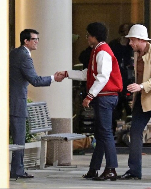 据看电影消息,迈克尔·杰克逊传记片《迈克尔》本周继续在洛杉矶拍摄,而目前也已经有新的片场照流出,男主角贾法尔·杰克逊身着那件经典的棒球夹克。