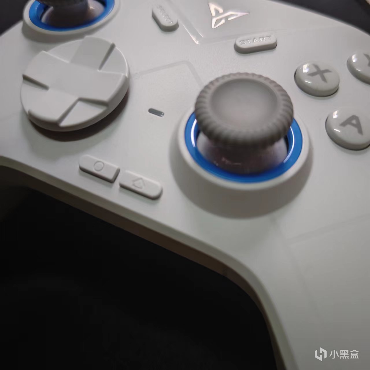测面拍了几张图一直不聚焦,就简单说一下肩键和扳机的纹理,细小颗粒排列组成,摸起来平滑细腻,背面的握把也做了相同的防滑处理,但是由于颗粒细小且排布紧密,使用舒服的同时容易藏灰