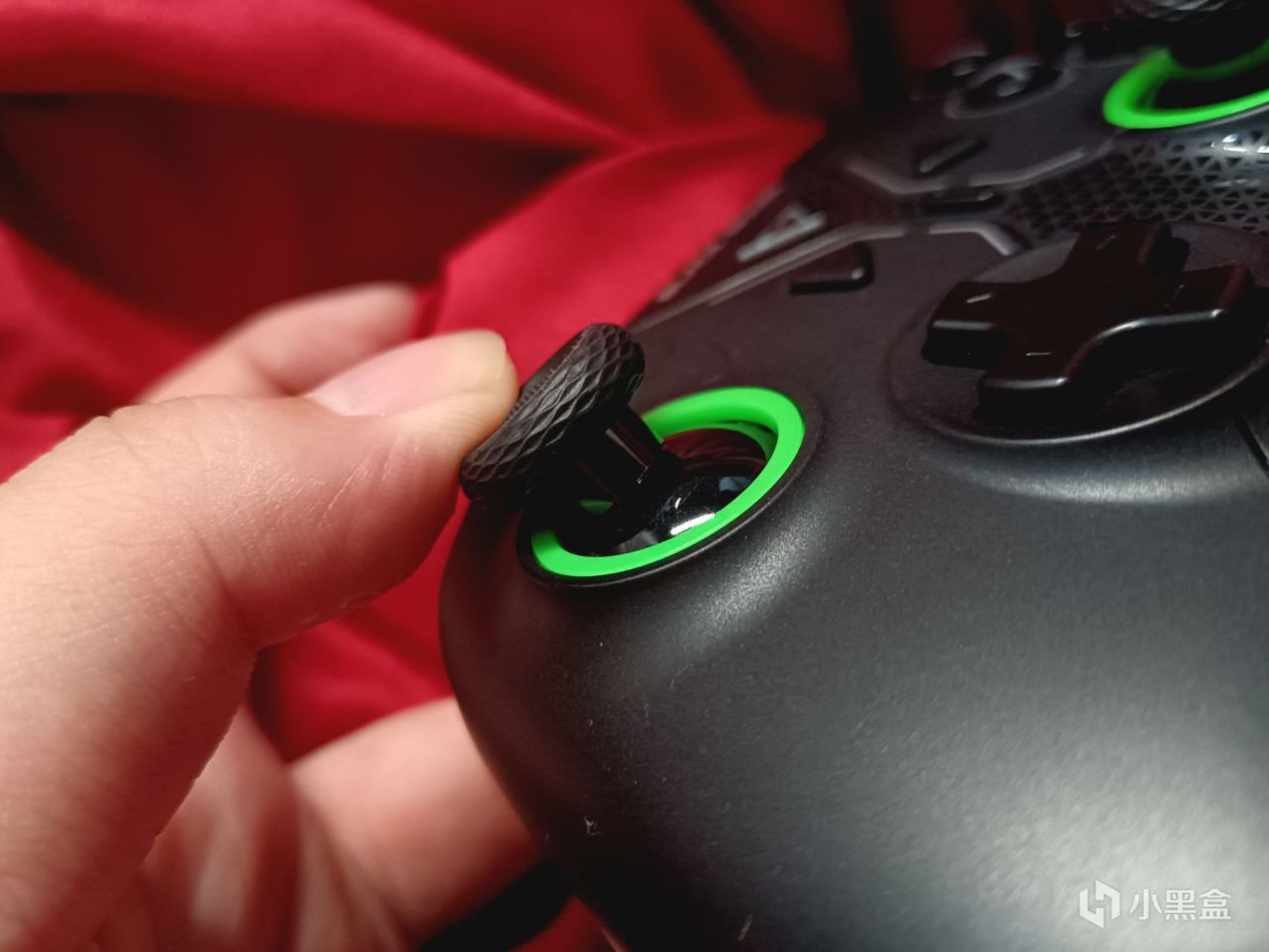 摇杆方面采用的是碳膜摇杆,虽然使用寿命方面不如霍尔摇杆,但是精准度是比较可以的,更加适合游玩FPS游戏,魔导师这款手柄也是支持0死区调节的,无中心吸附,无十字吸附,这款手柄外圈调教是正圆形,这里的错误率与摇杆好坏无关,外圈也是做了绿色的防磨环。