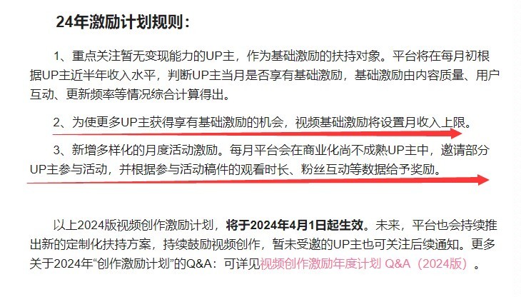 就在昨天,B站發佈時評創作激勵年度計劃2024版,重點關注暫無變現能力的個人UP主,通過激勵計劃爲他們的早期創作和成長提供幫助,4月1日正式生效。