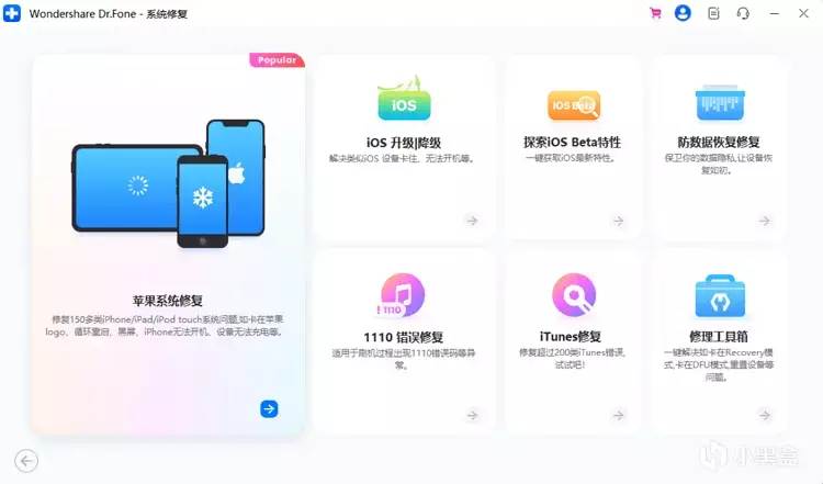 如果连接iTunes之后,没有出现更新的选项,那么你可以尝试使用第三方工具来恢复系统。比如Wondershare Dr.Fone系统修复工具,它的苹果系统修复功能可以无损数据修复手机系统,相当于更新手机系统。但是一般第三方工具都是付费工具,所以如果不想付费的话,只能尝试下一种方法了。