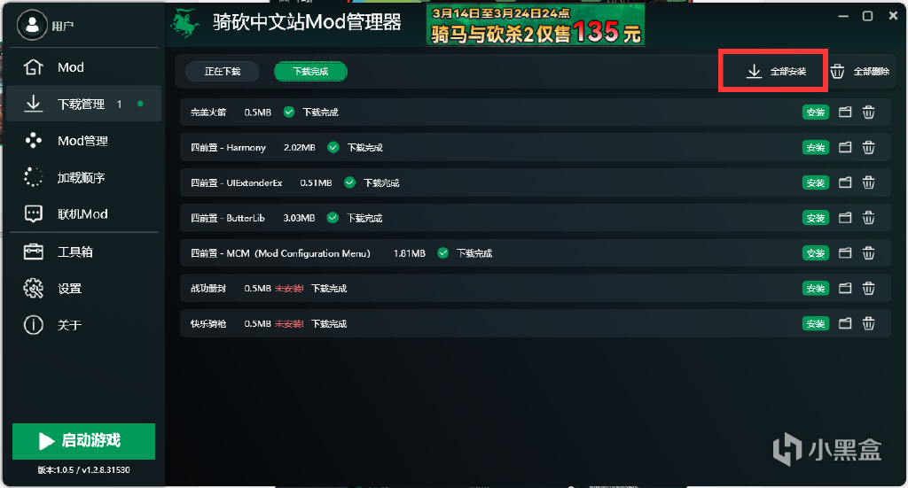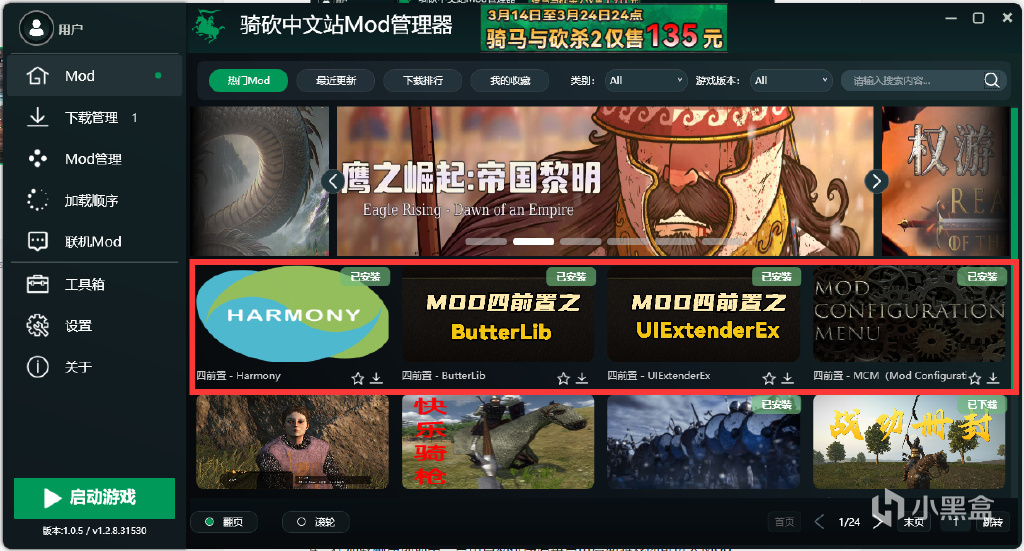 1、打開騎砍中文站的MOD管理器,下載與瞭解管理器詳情可以瀏覽【官方推薦】全網MOD一鍵安裝的神級工具《騎砍中文站Mod管理器》V1.01正式版發佈