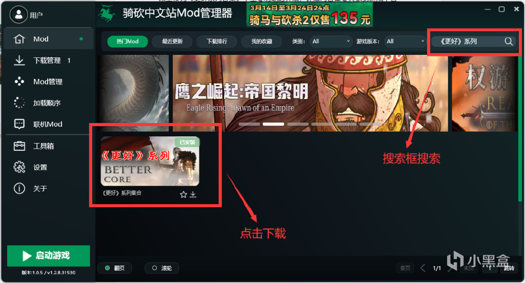 1、可以直接百度搜索“騎砍中文站 下載中心”,進入下載站後搜索“更好系列合集”進行下載