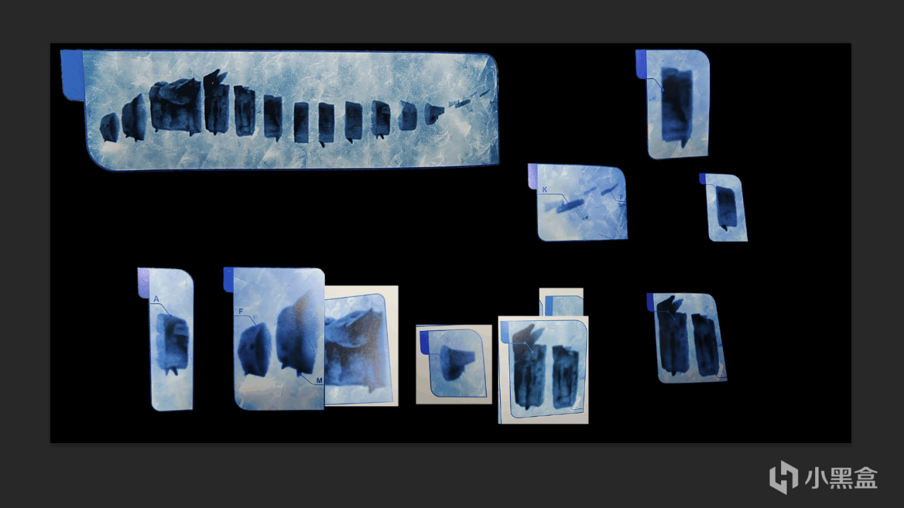 解密過程:這是最麻煩的一個解密,在藍色EC書中,可以發現很多圖片上面有數字或者字母,而有數字或者字母的圖標全部是都蠕蟲的切片,正好這本書中有一個蠕蟲切片的總裝圖(我不知道這種圖的生物學名稱應該是什麼,所以借用一下機械製圖“總裝圖”的說法),所以我們把這本書中所有蠕蟲的切片拍照後,放在PS中按照總裝圖重新排序,就能得到一串代碼,這個就是名片近視的代碼“FMM-44A-RKP”