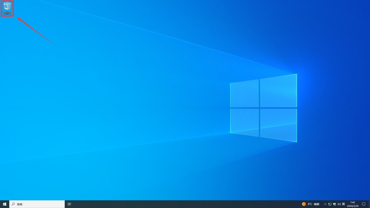 桌面只有一个“回收站”图标,孤零零的。