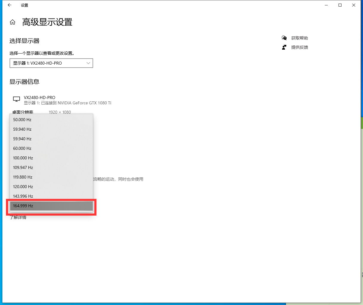 更改刷新率